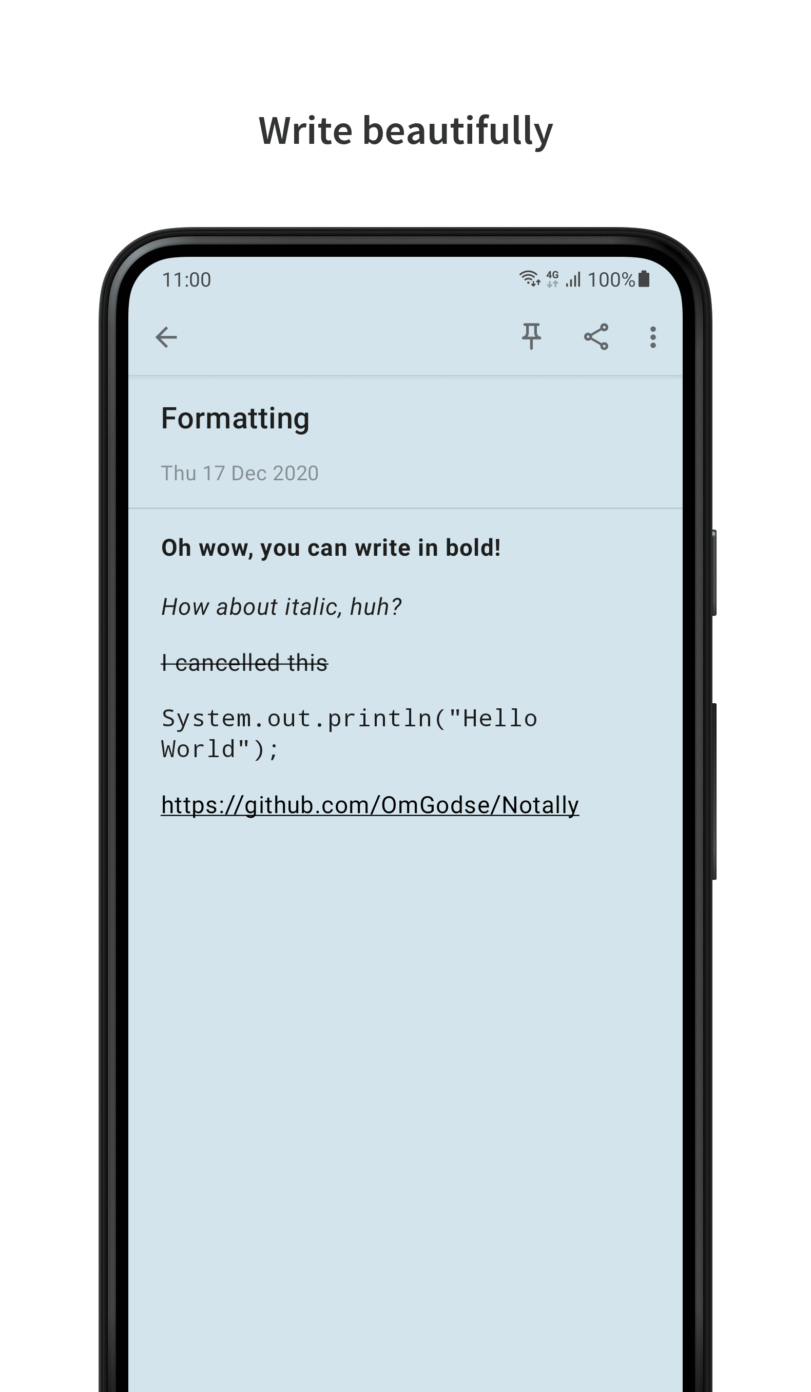 Notally is a minimalistic note taking app with a beautiful material design and powerful features.