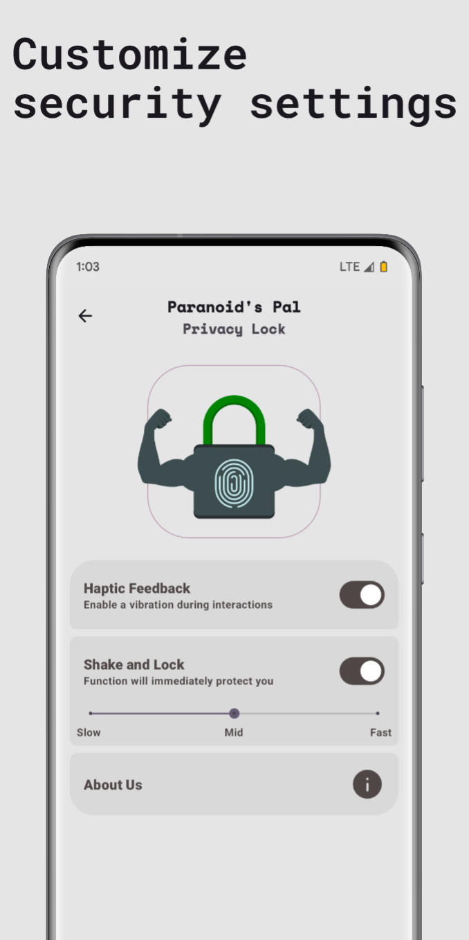 * Instant Lock with Shake: In urgent situations, just shake your phone, and it locks immediately, ensuring quick protection when you need it.