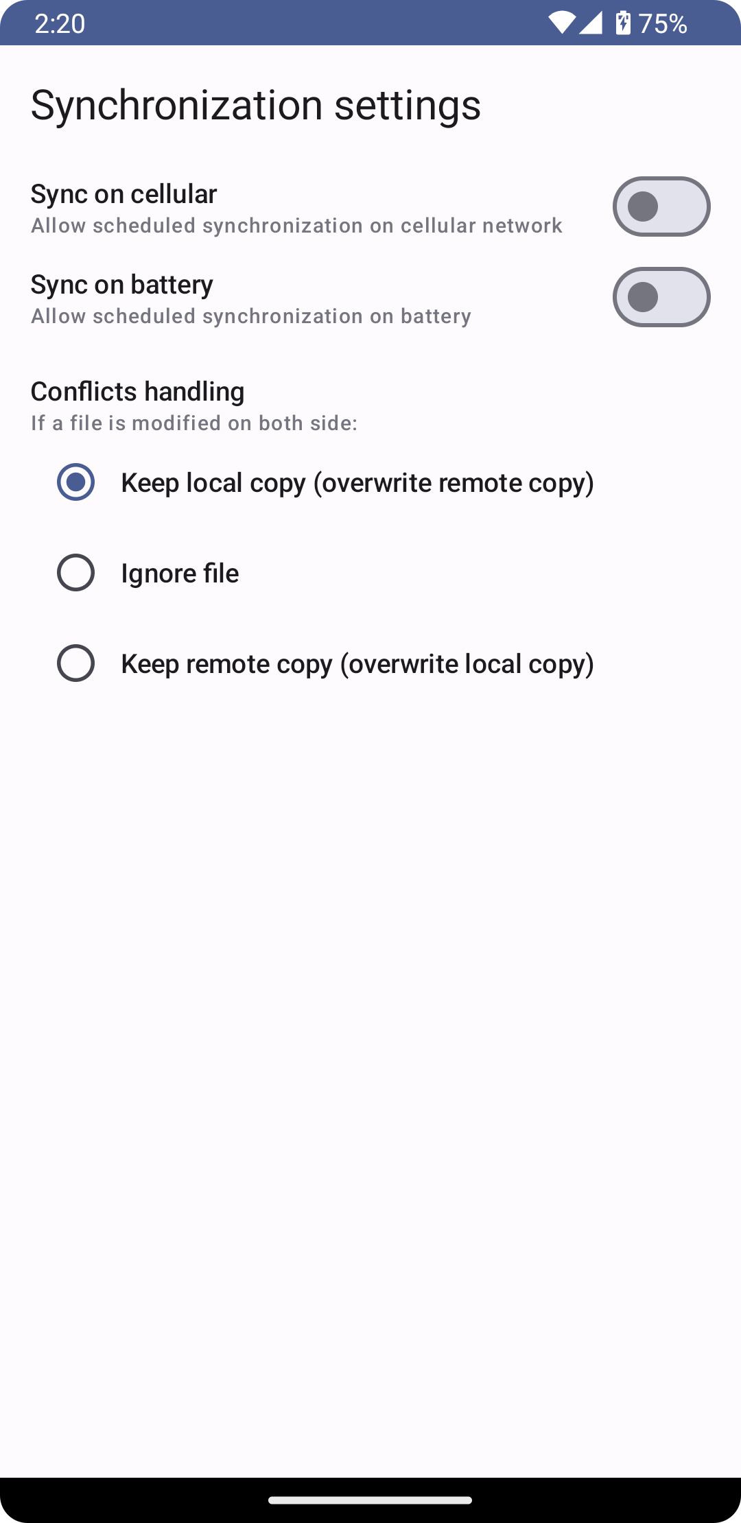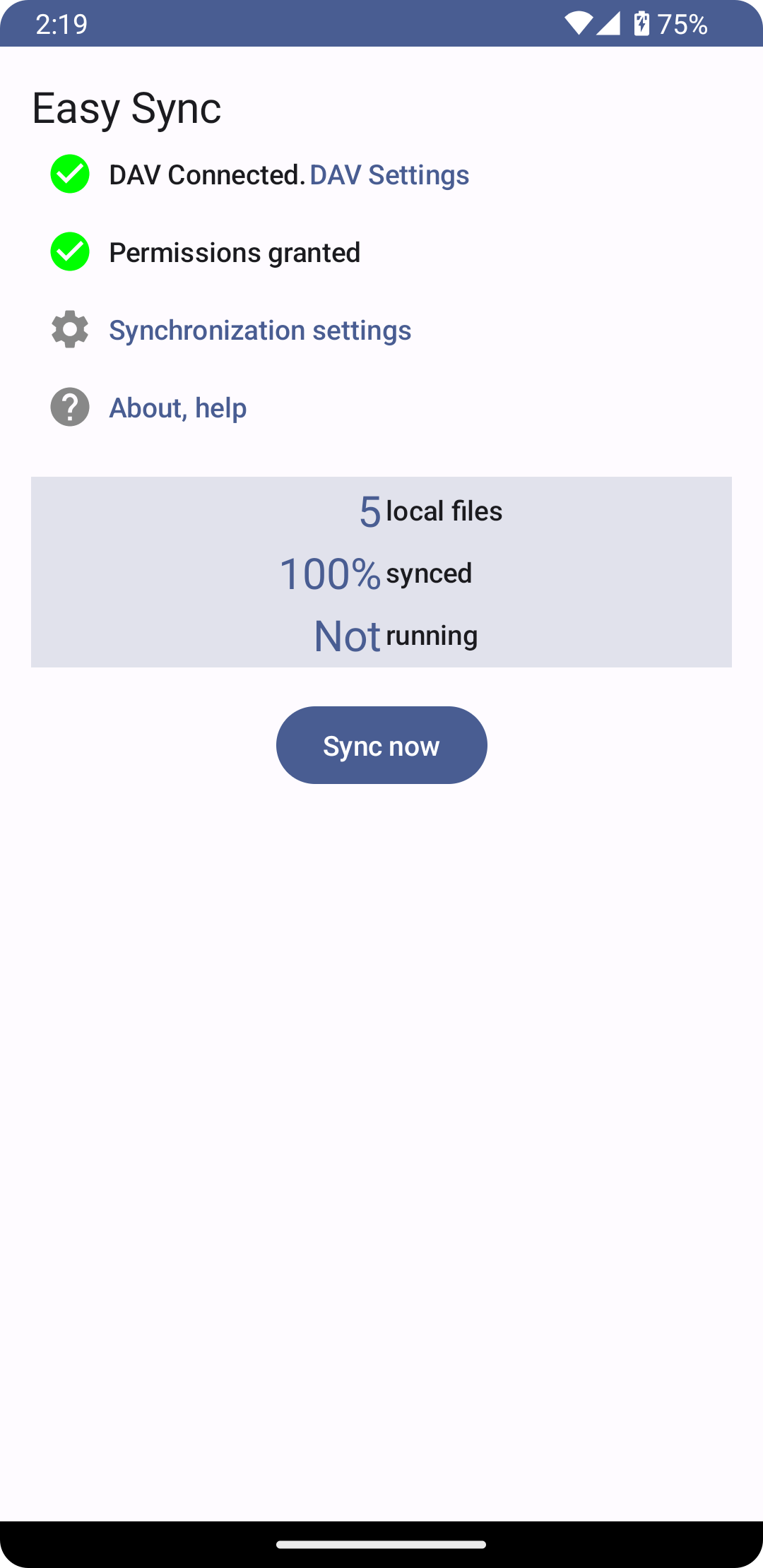 Synchronize images, videos, audio and downloads with your WebDAV server.