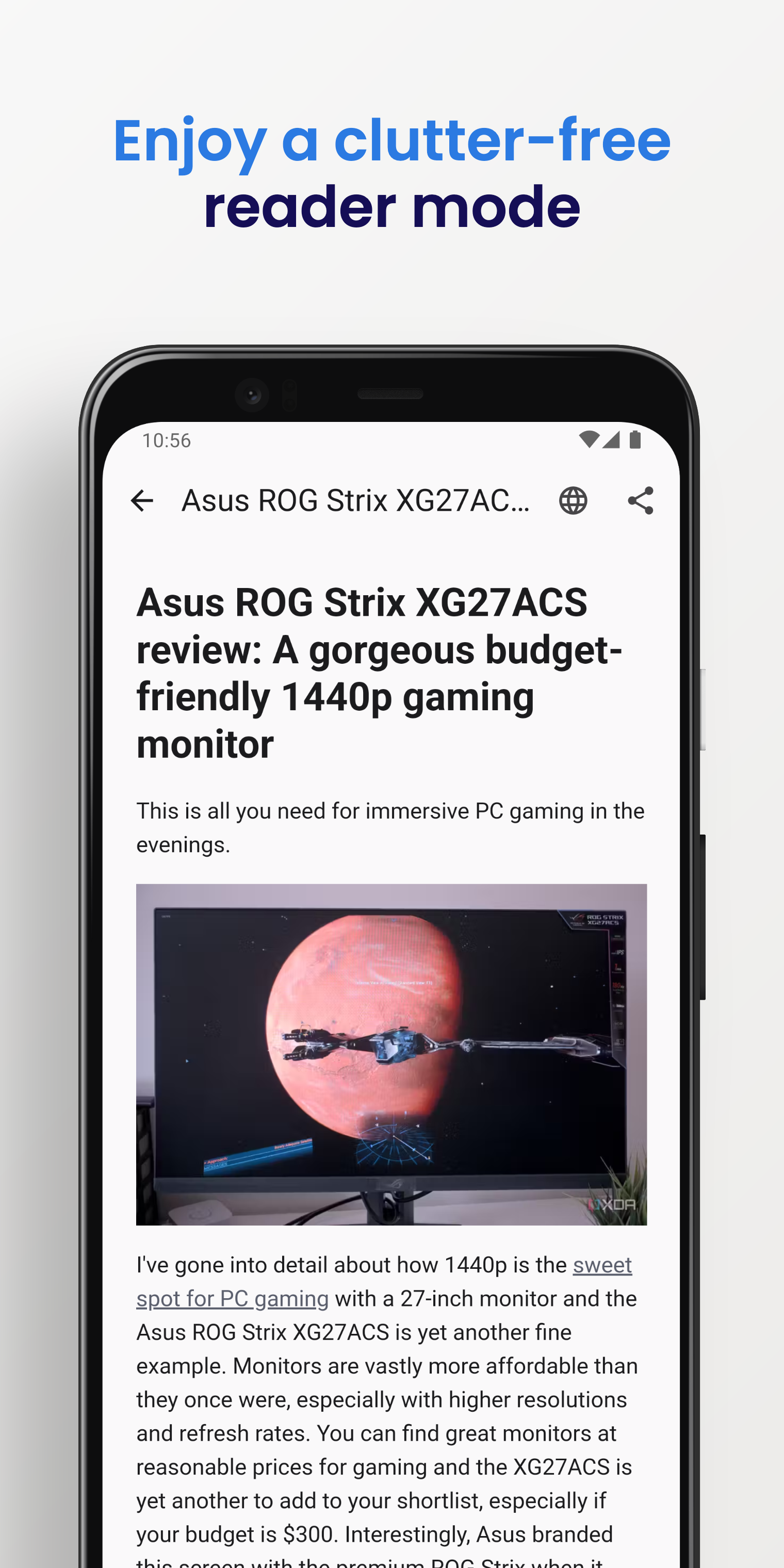 - Customizable reading experience with reader mode