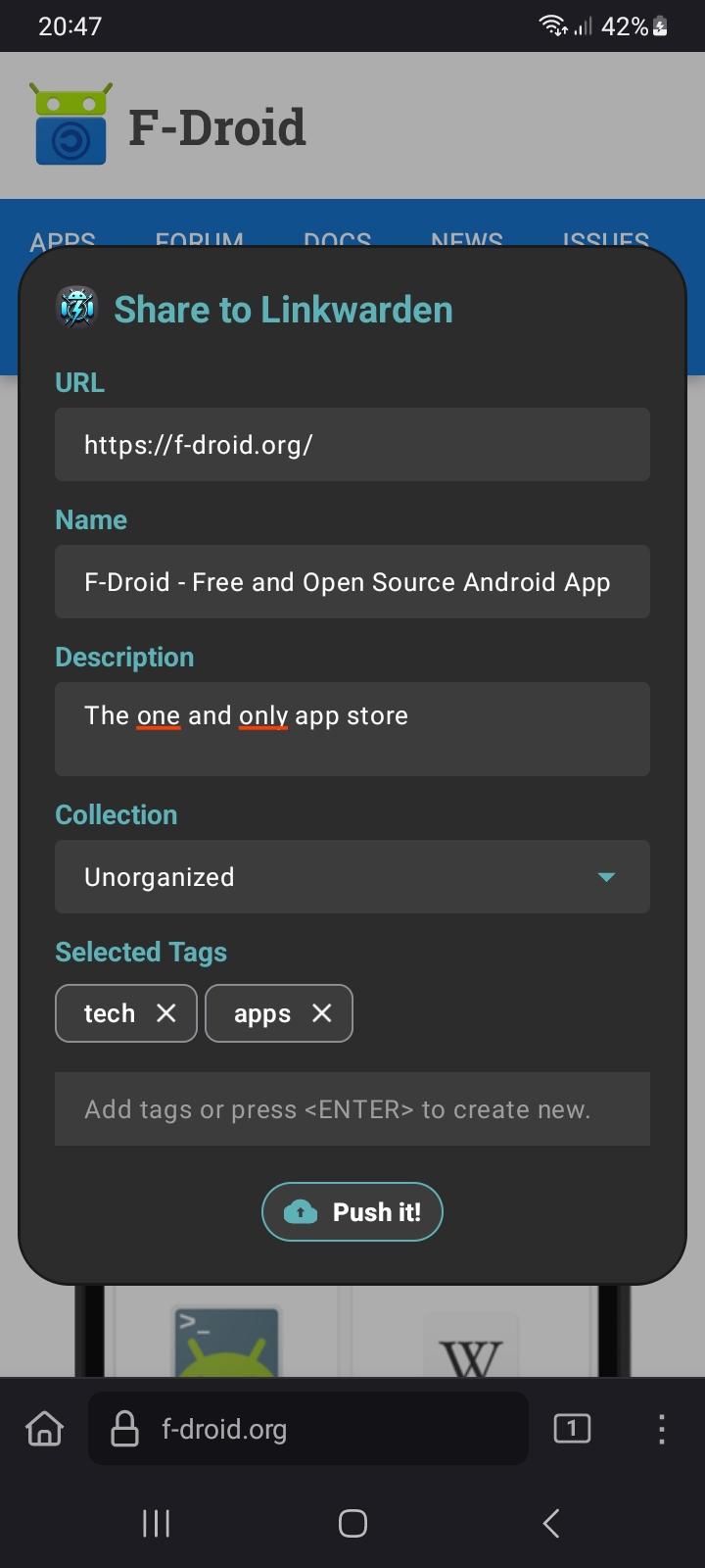 LinkDroid is an companion app for Linkwarden on Android.You can quickly share links directly to your
