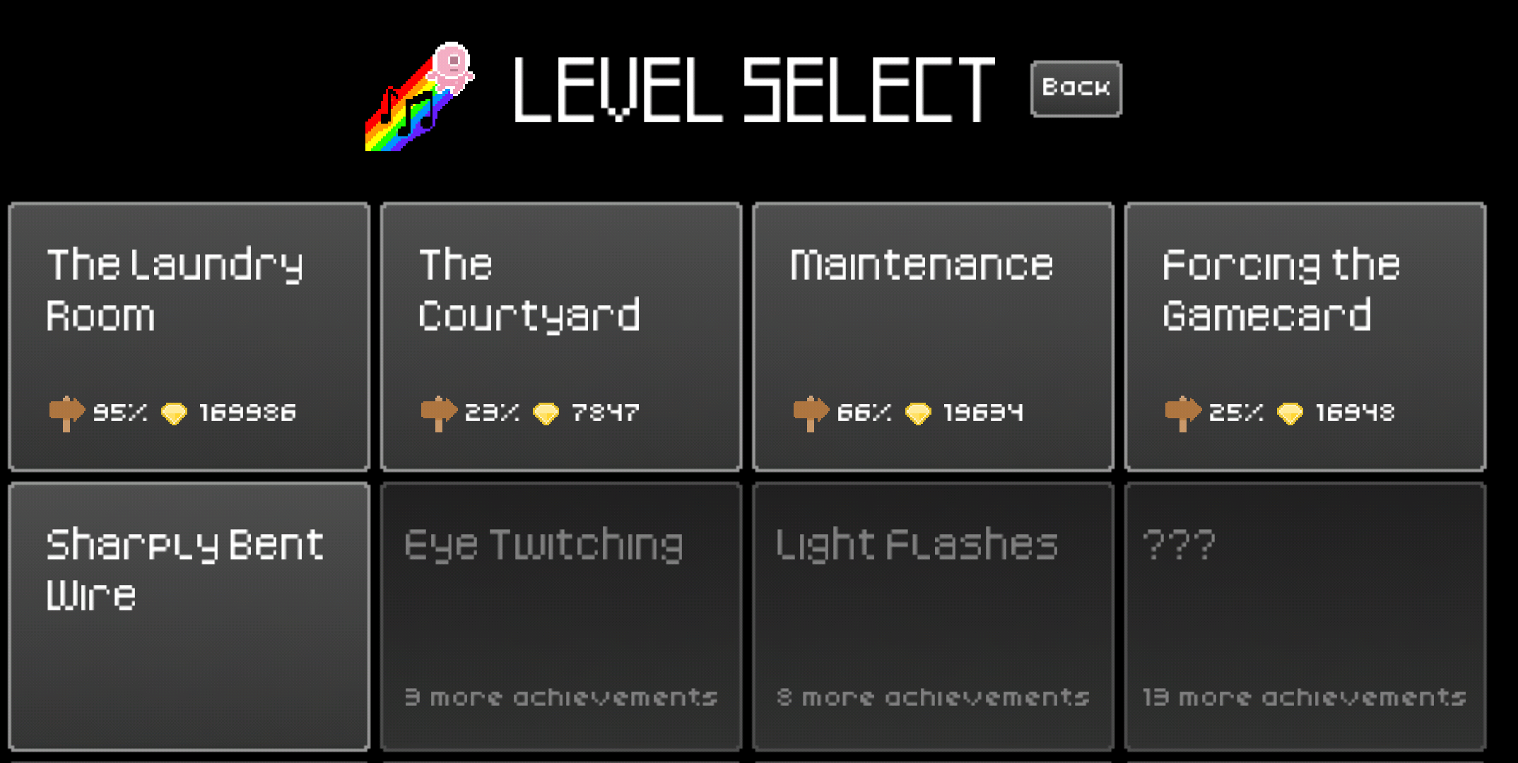 Play through dozens of levels, or use your own MP3 files to generate custom worlds.