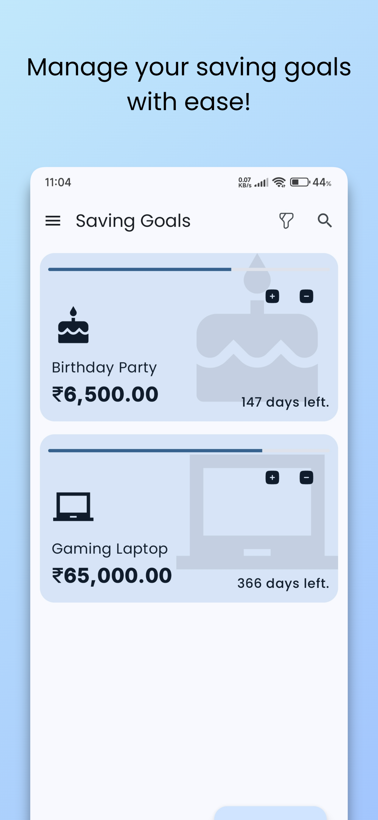 • Add images to your savings goals to maintain motivation!