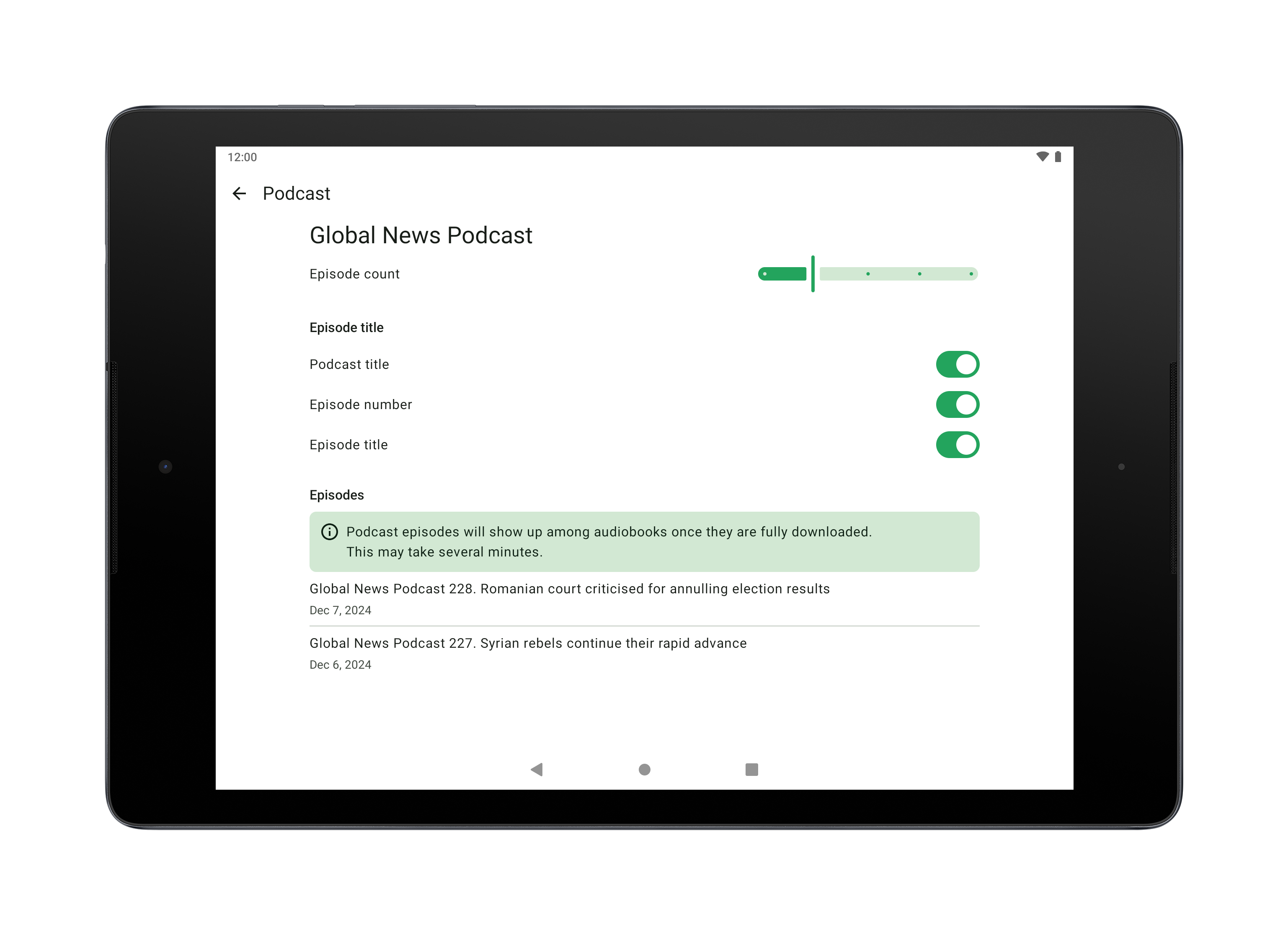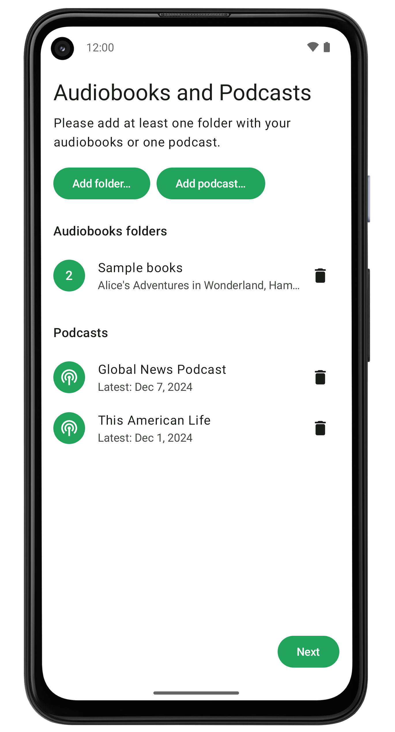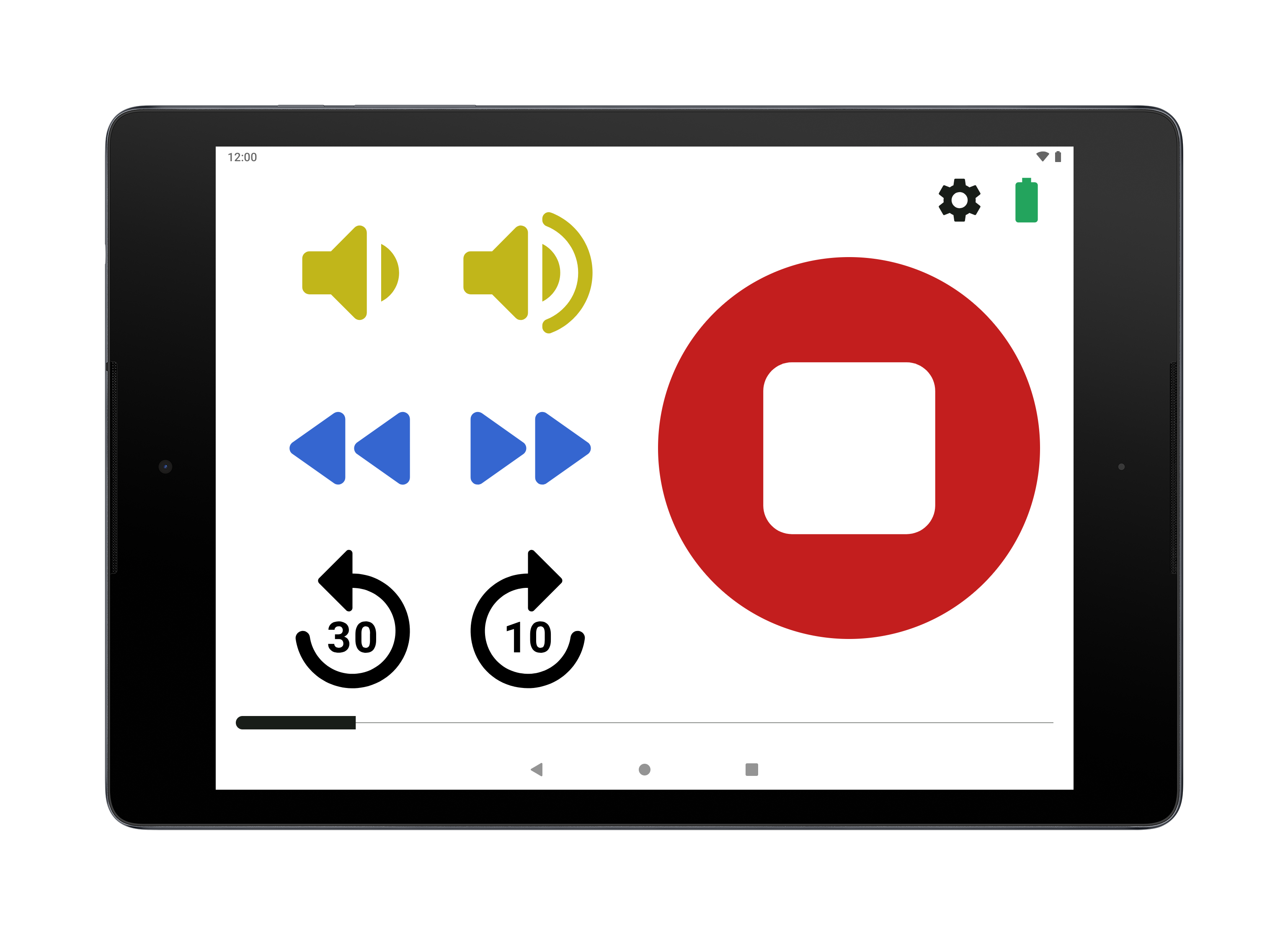 Caregiver-controlledAdd audiobooks and podcasts and adjust the interface in the settings panel. The listener gets a minimal UI that is only for playback. They can use it independently on their own.