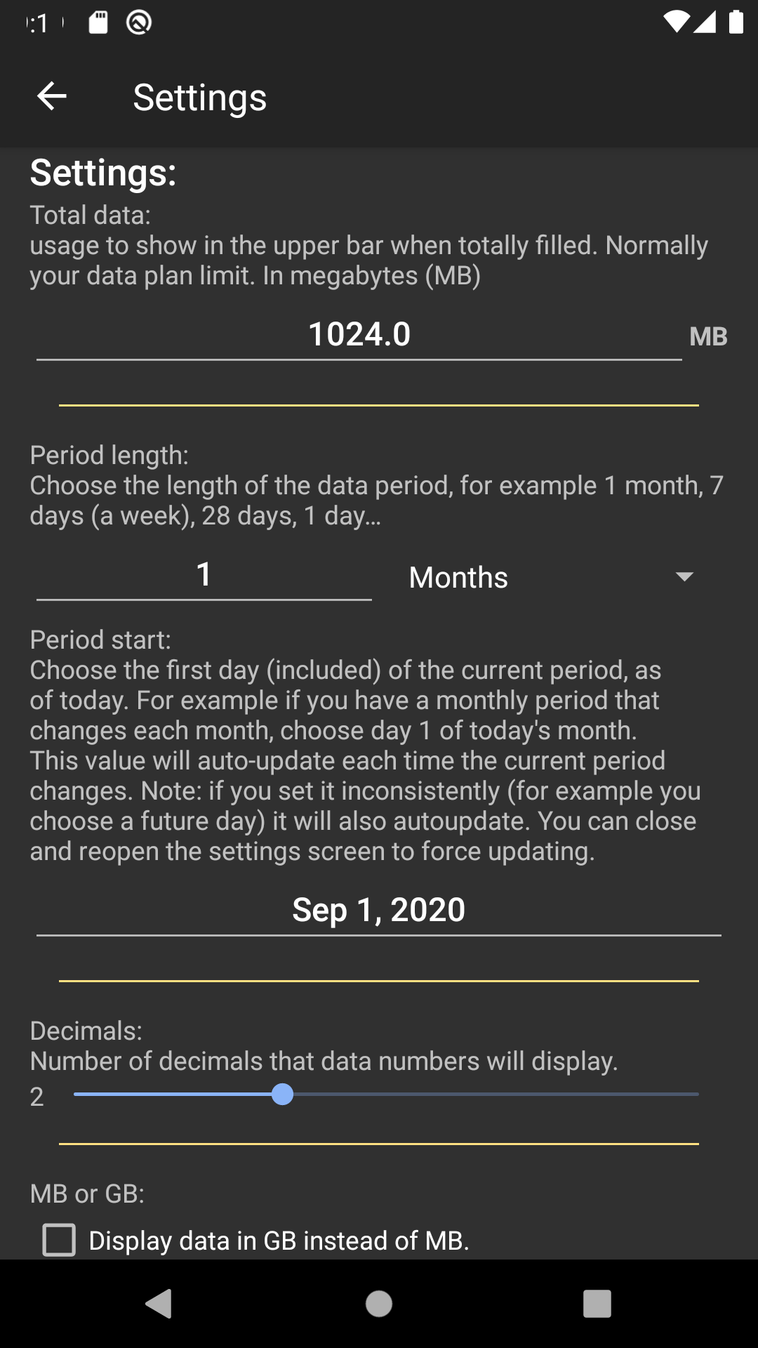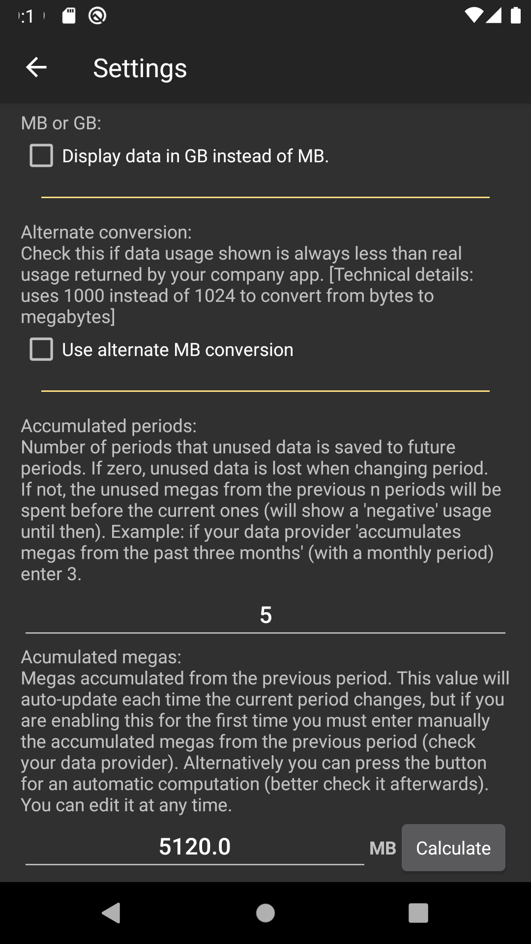 Please note that the current consumption is measured by your device and may differ with your company measurement. I can't take responsibility if the displayed data usage is wrong.