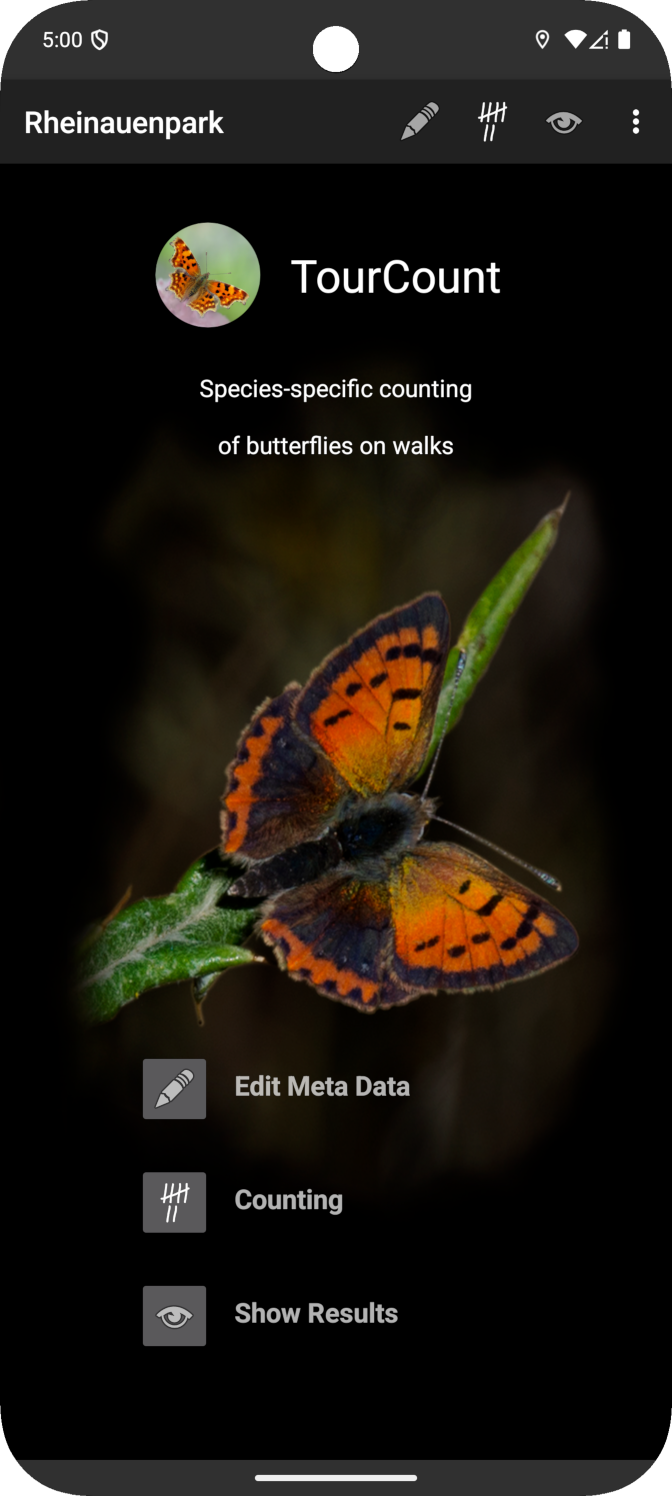 The 2nd app, TransektCount serves transect counters on their inspection walks. It supports species-specific counting of butterflies per transect section according to the European Butterfly Monitoring Scheme method.