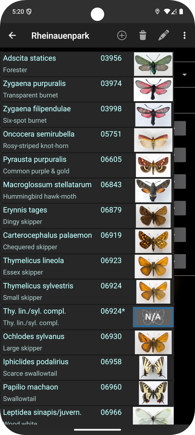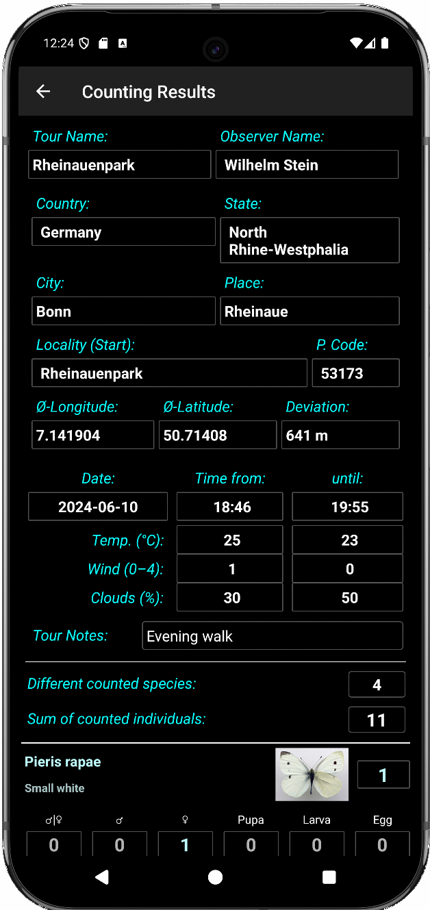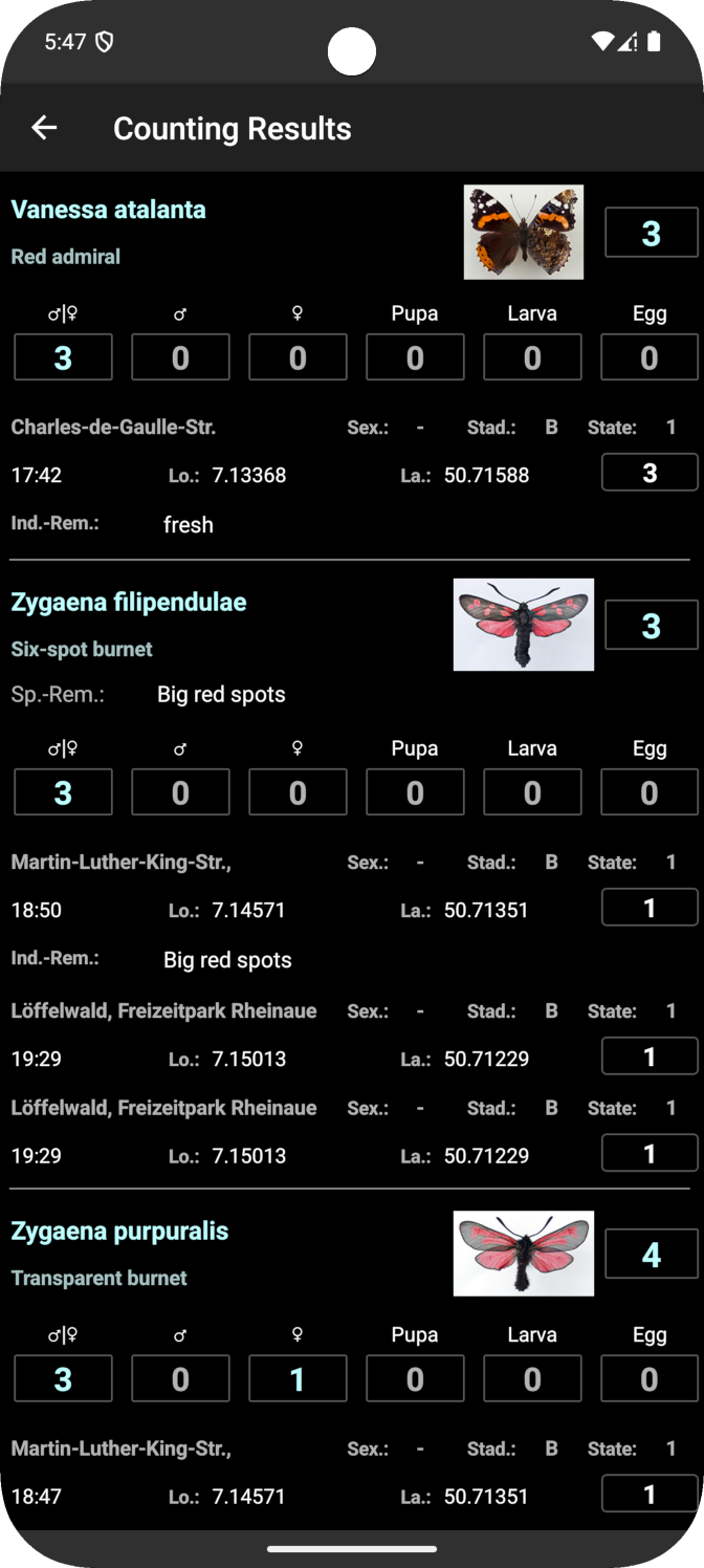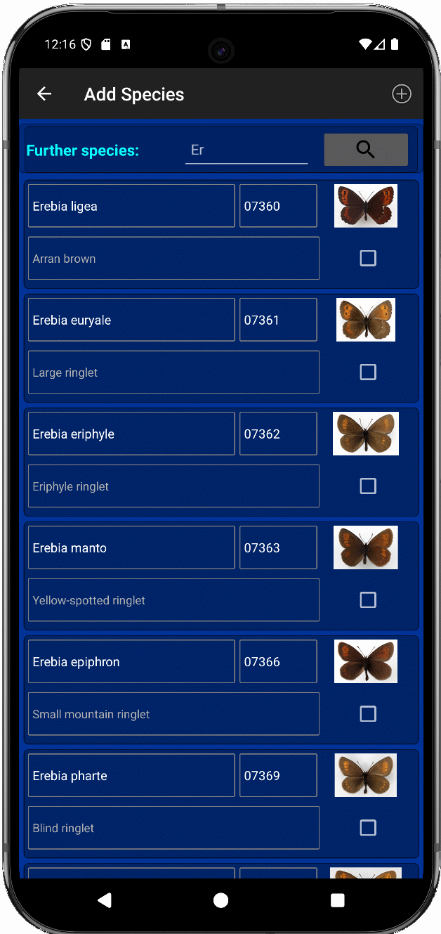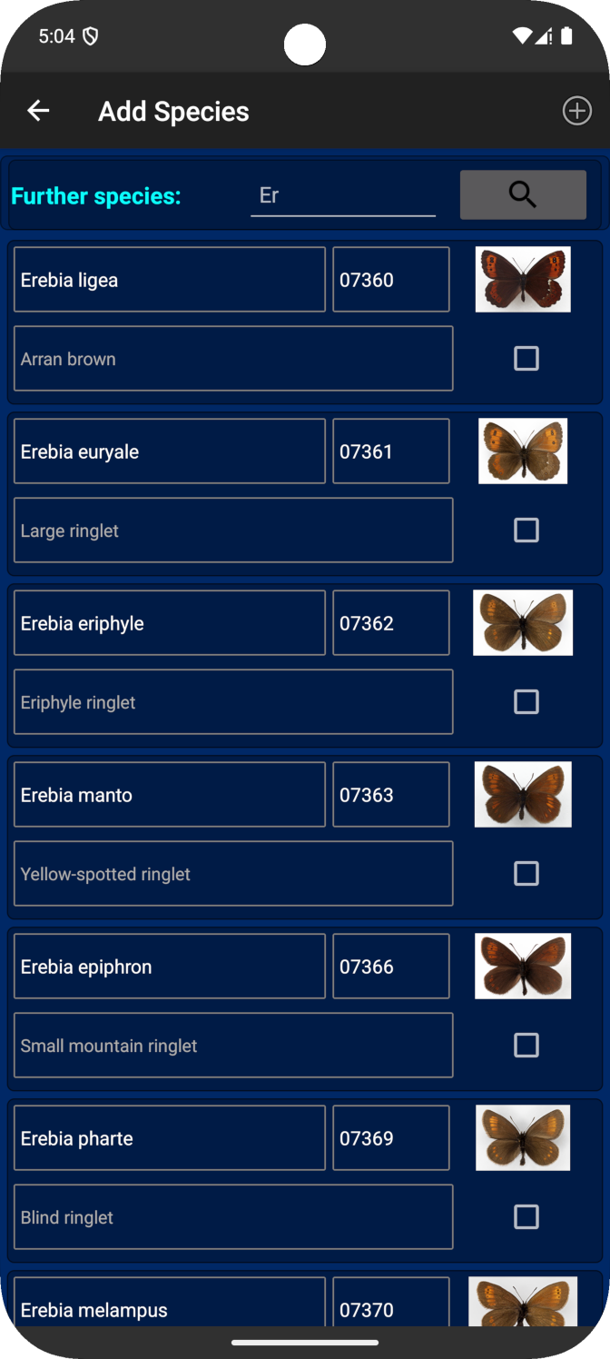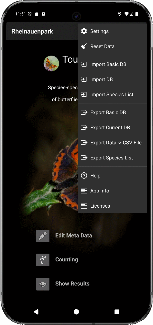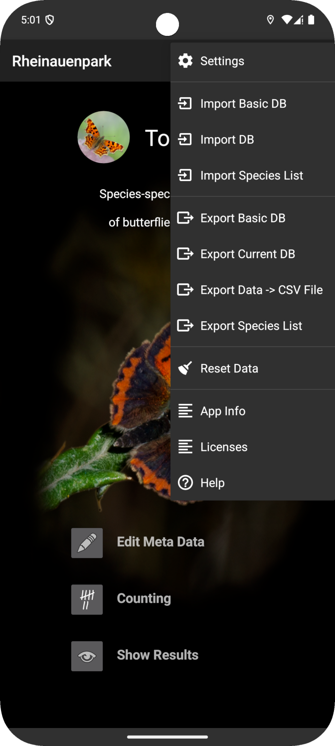 - Databases can be individually created and adapted within the app regarding meta data and expected butterfly species.