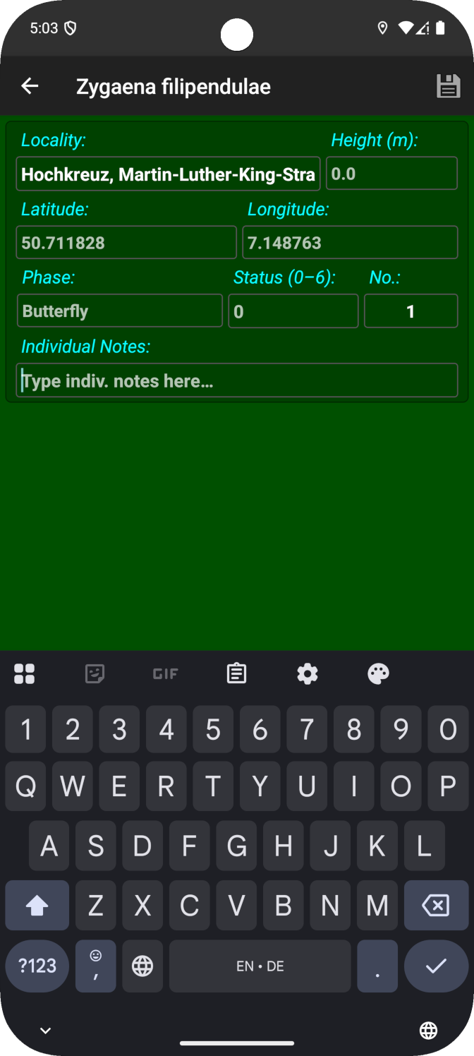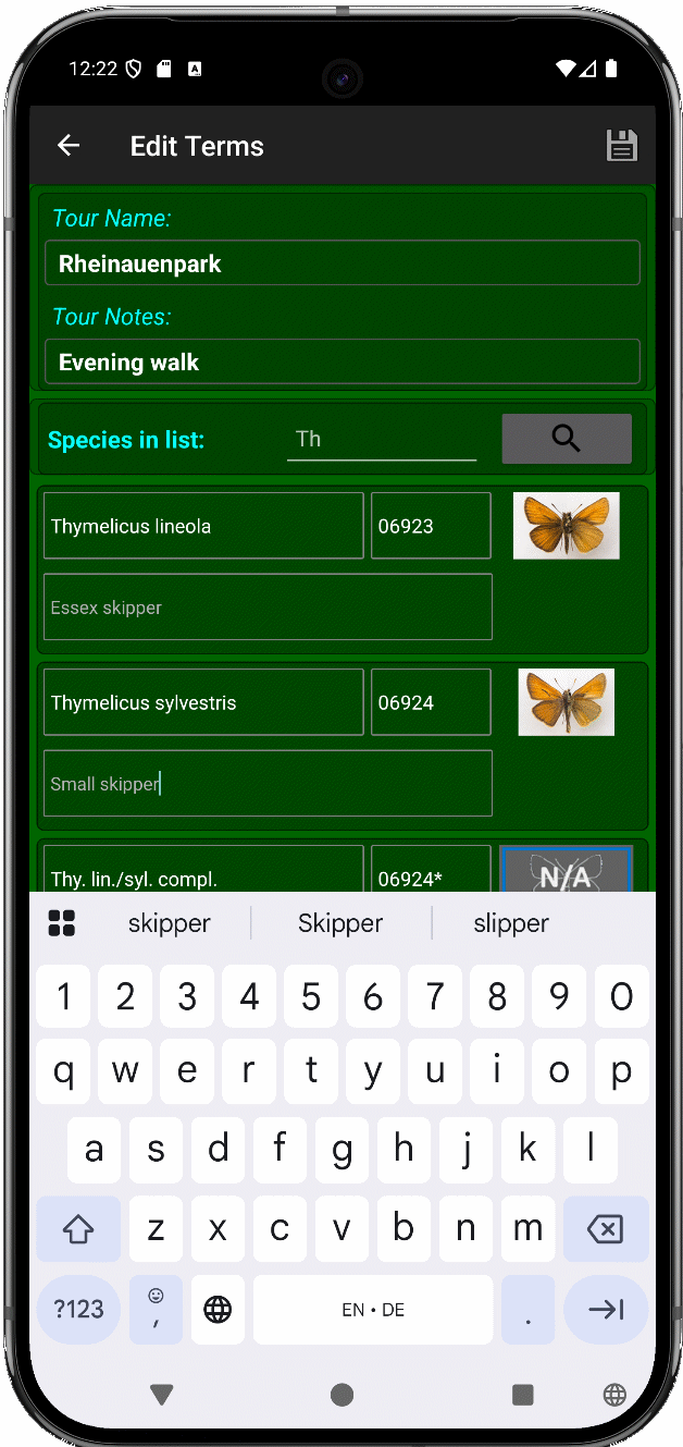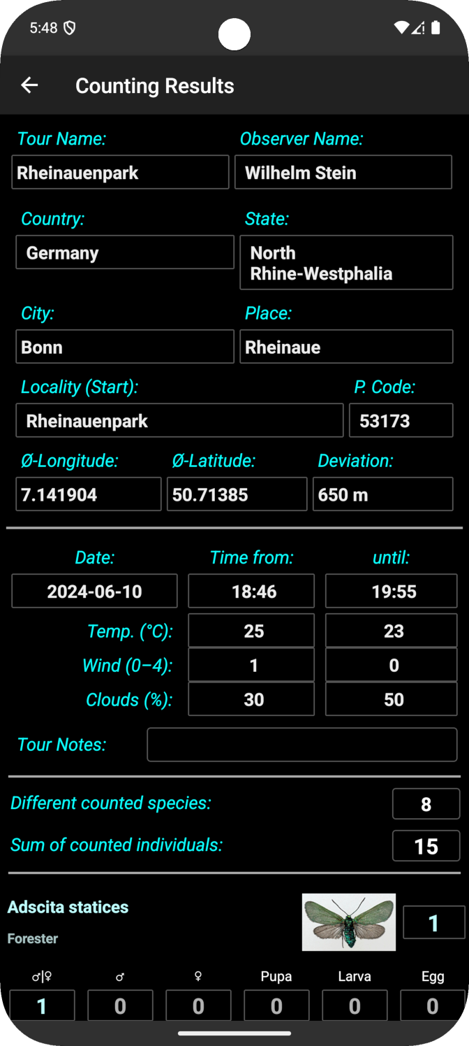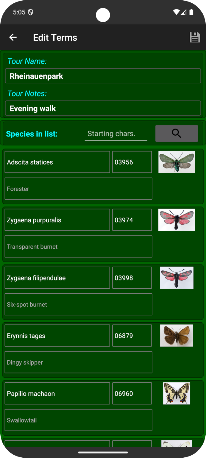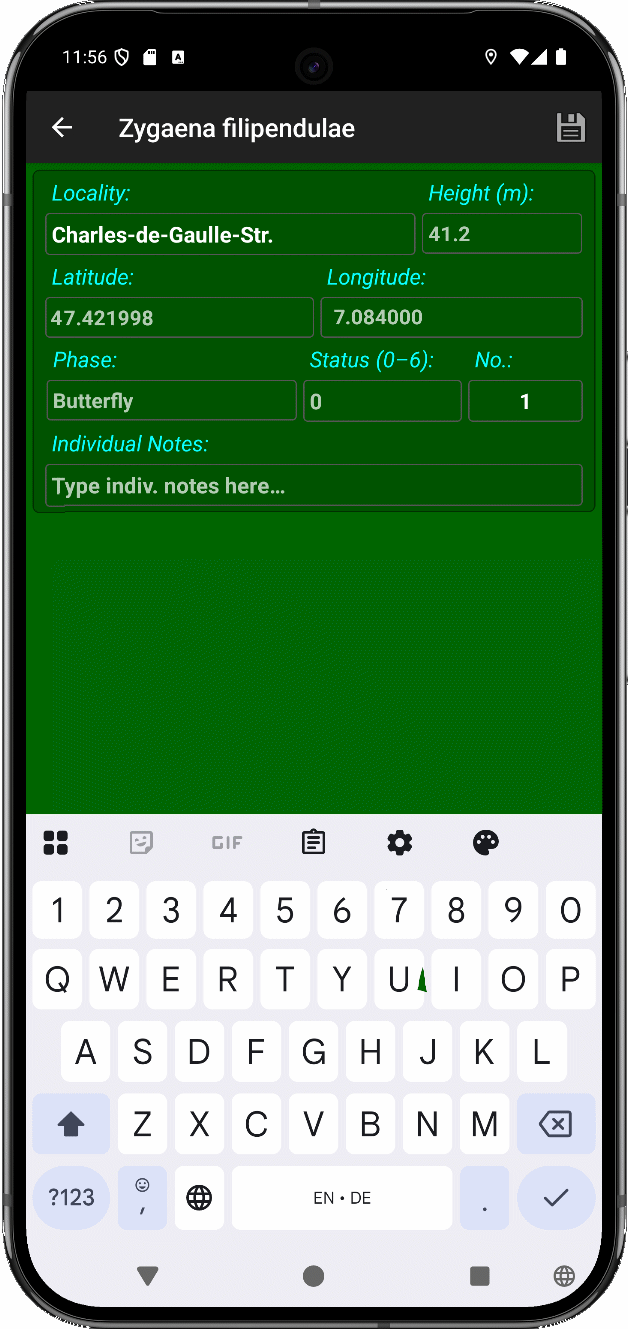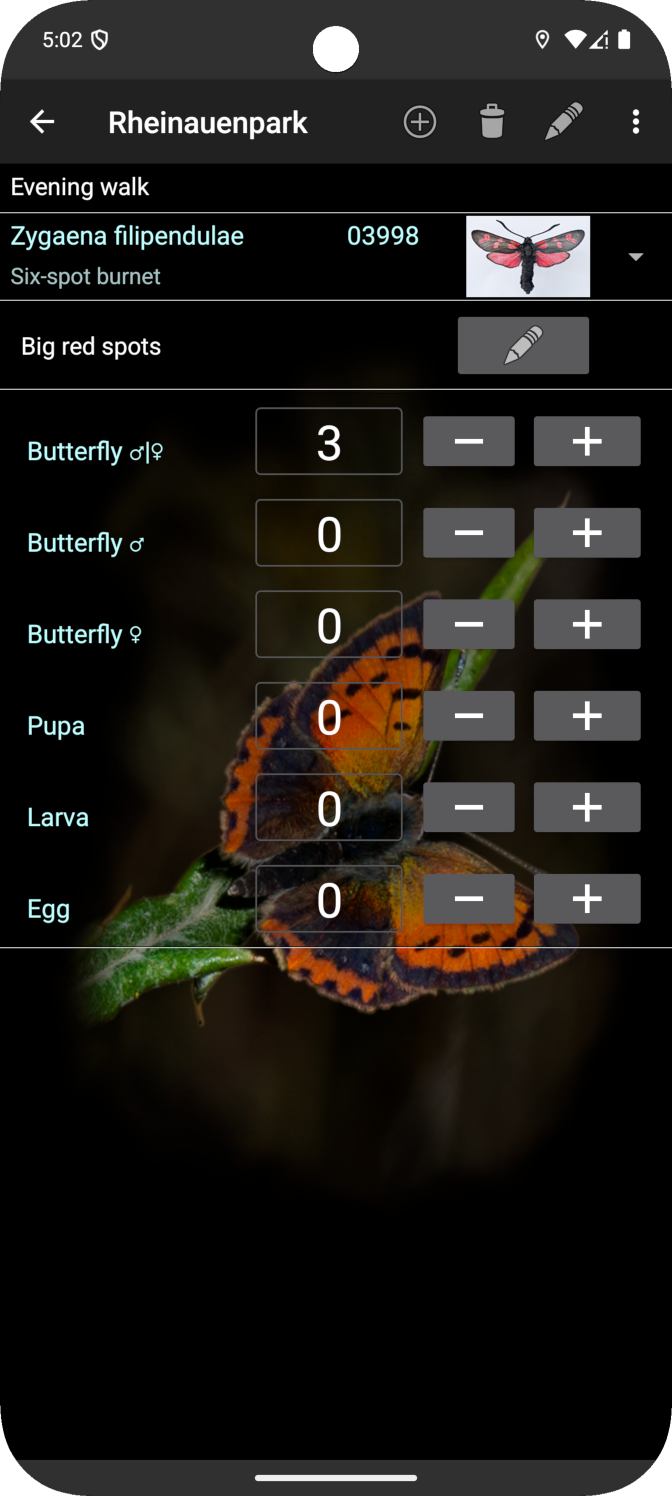 - Databases can be individually created and adapted within the app regarding meta data and expected butterfly species.
