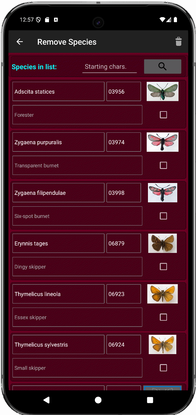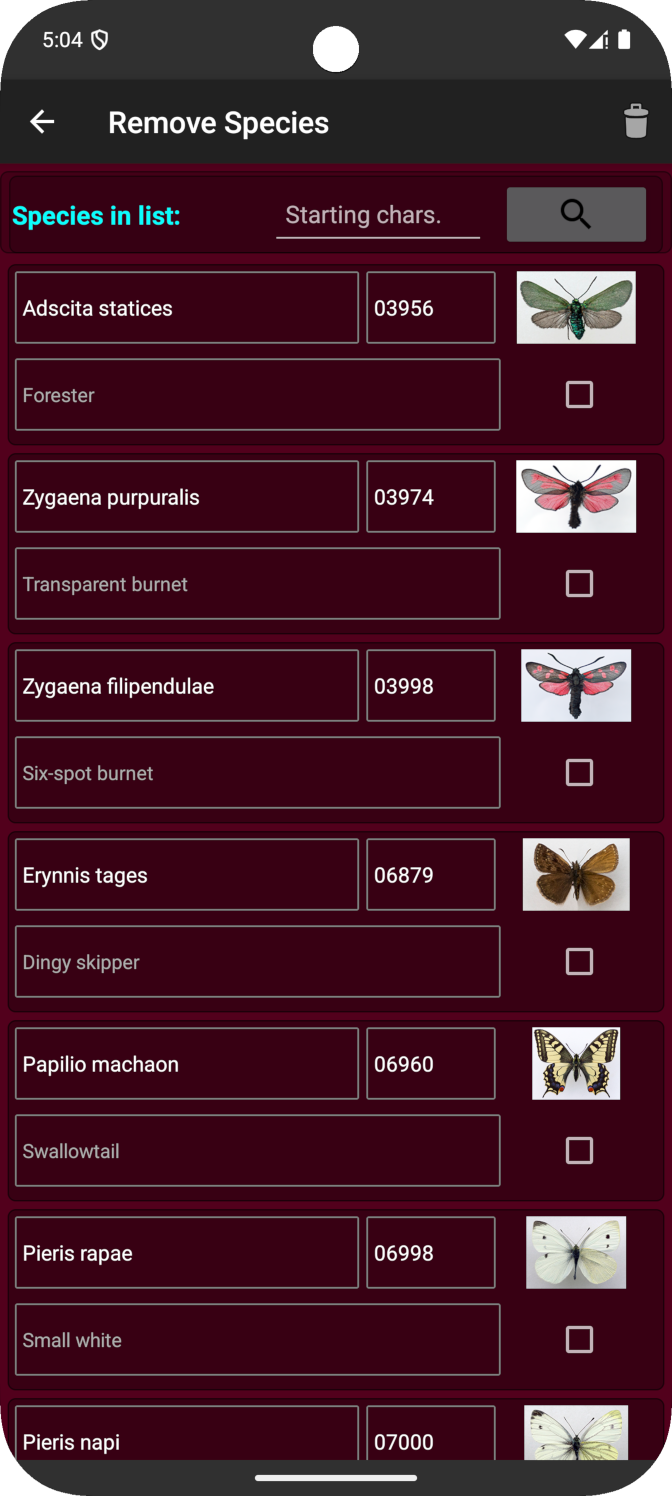 - The app provides functions to add, delete or edit the species for the current species list.