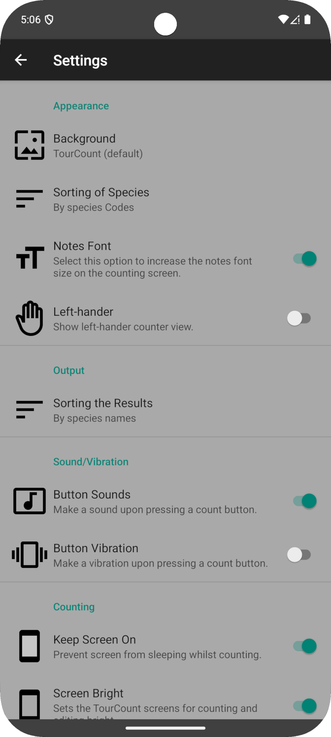 - Shows a one-time hint message, when counting outside of Europe, as the app has only codes and pictures of European species