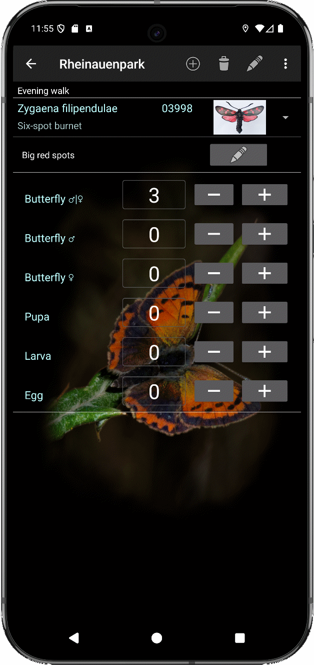 TourCount supports species-specific and individually GPS-localized registering of butterflies.