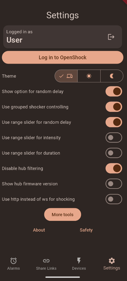This app uses https://openshock.app/ by default but self hosted instances can be used as well.