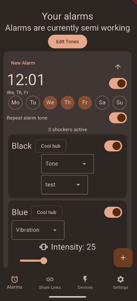 ShockAlarm is a powerful tool for controlling your Shockers via OpenShock. It allows you to fully manage your shockers, logs, shares, hubs, and share links.