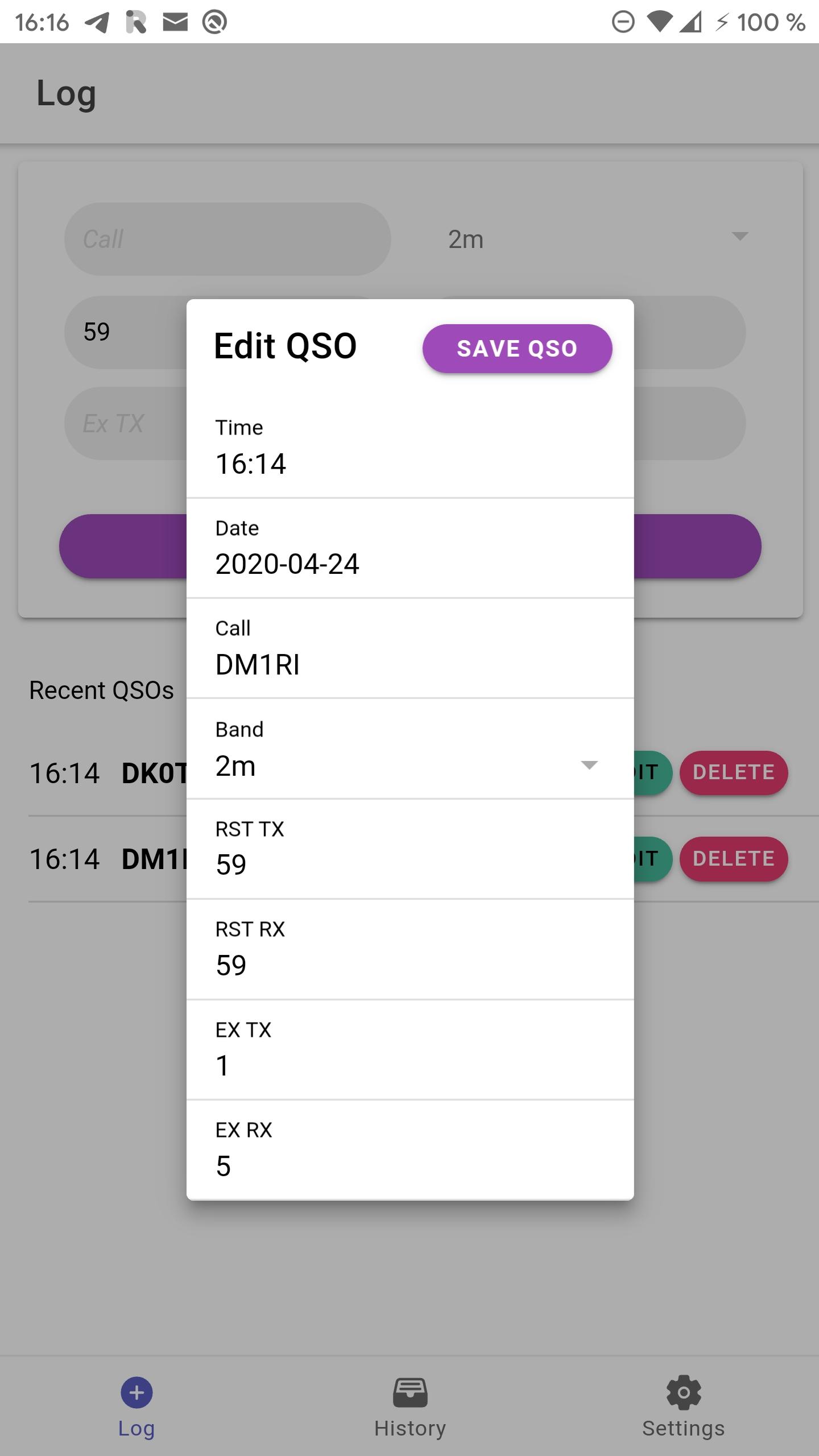 Simple FLOSS Ham Radio logging app for small contests and portable operation. 11 12 Features include: 13 * logging QSOs 14 * edit logged QSOs afterwards 15 * archive and manage different QSO lists 16 * export and share QSO lists as cabrillo 17 * dark mode