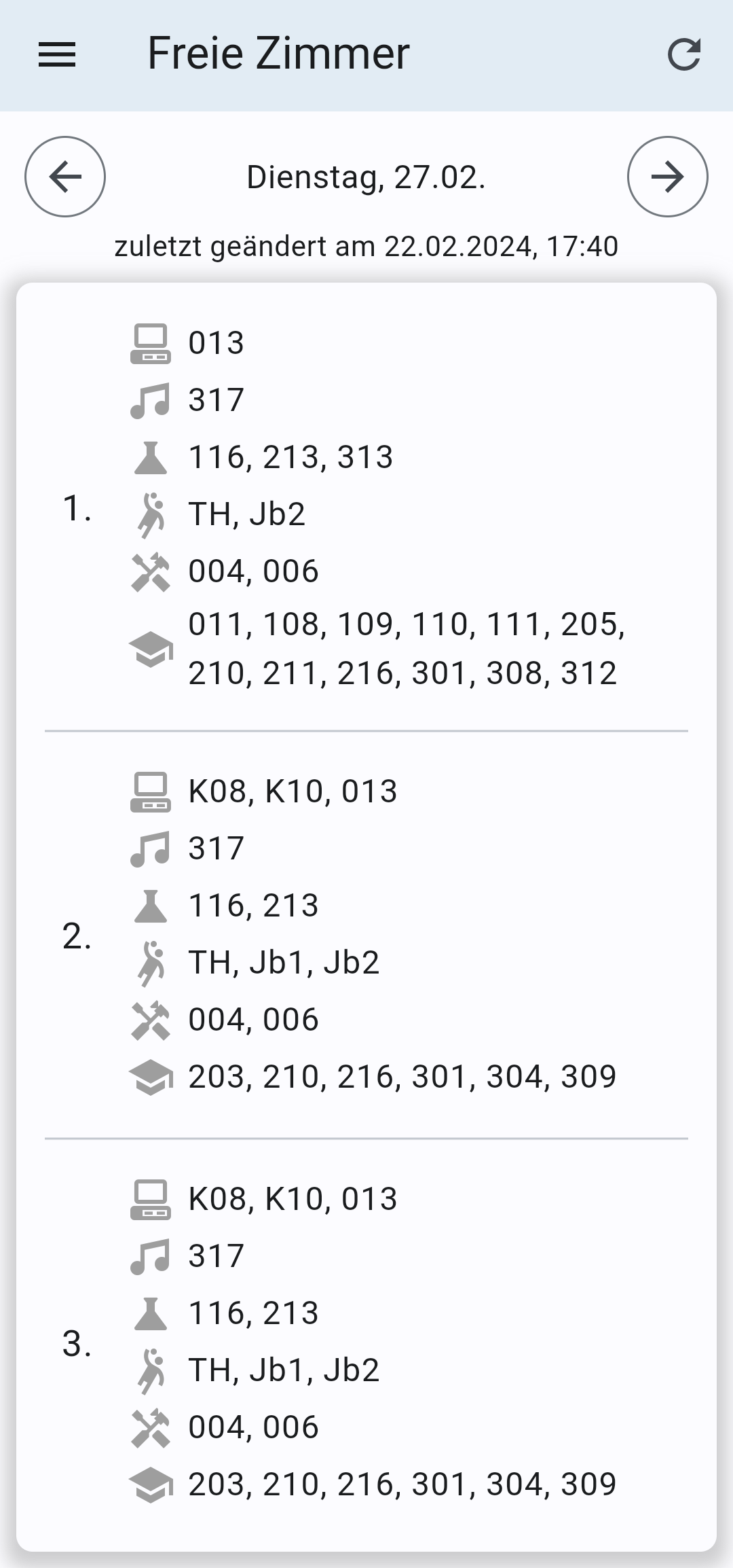 - Free rooms