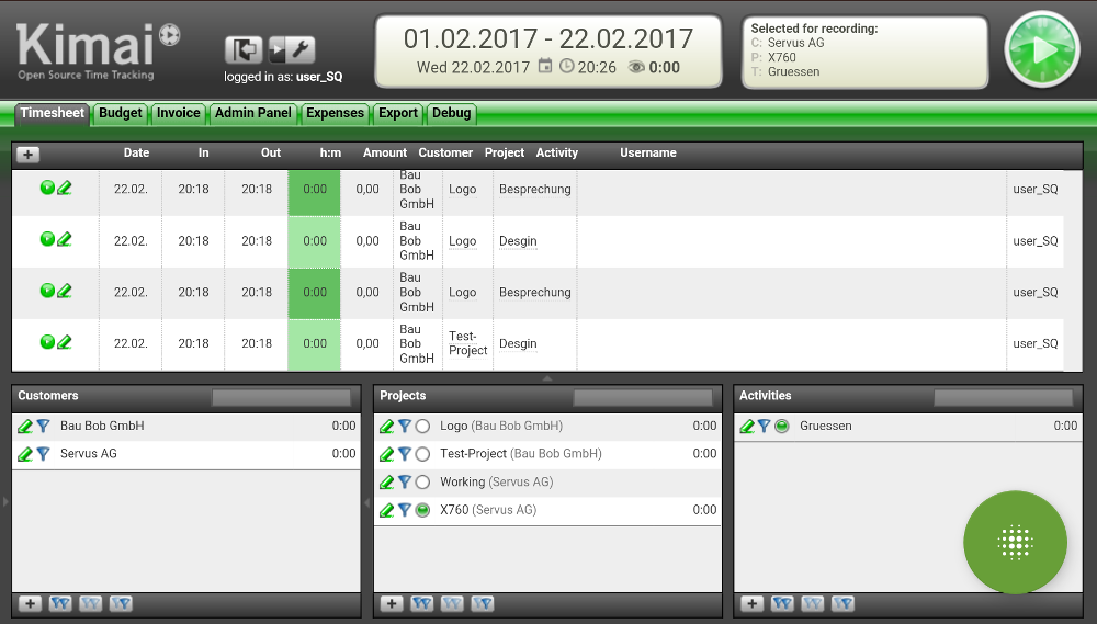 Normally you have to open your browser, go to favourites, click your kimai page,