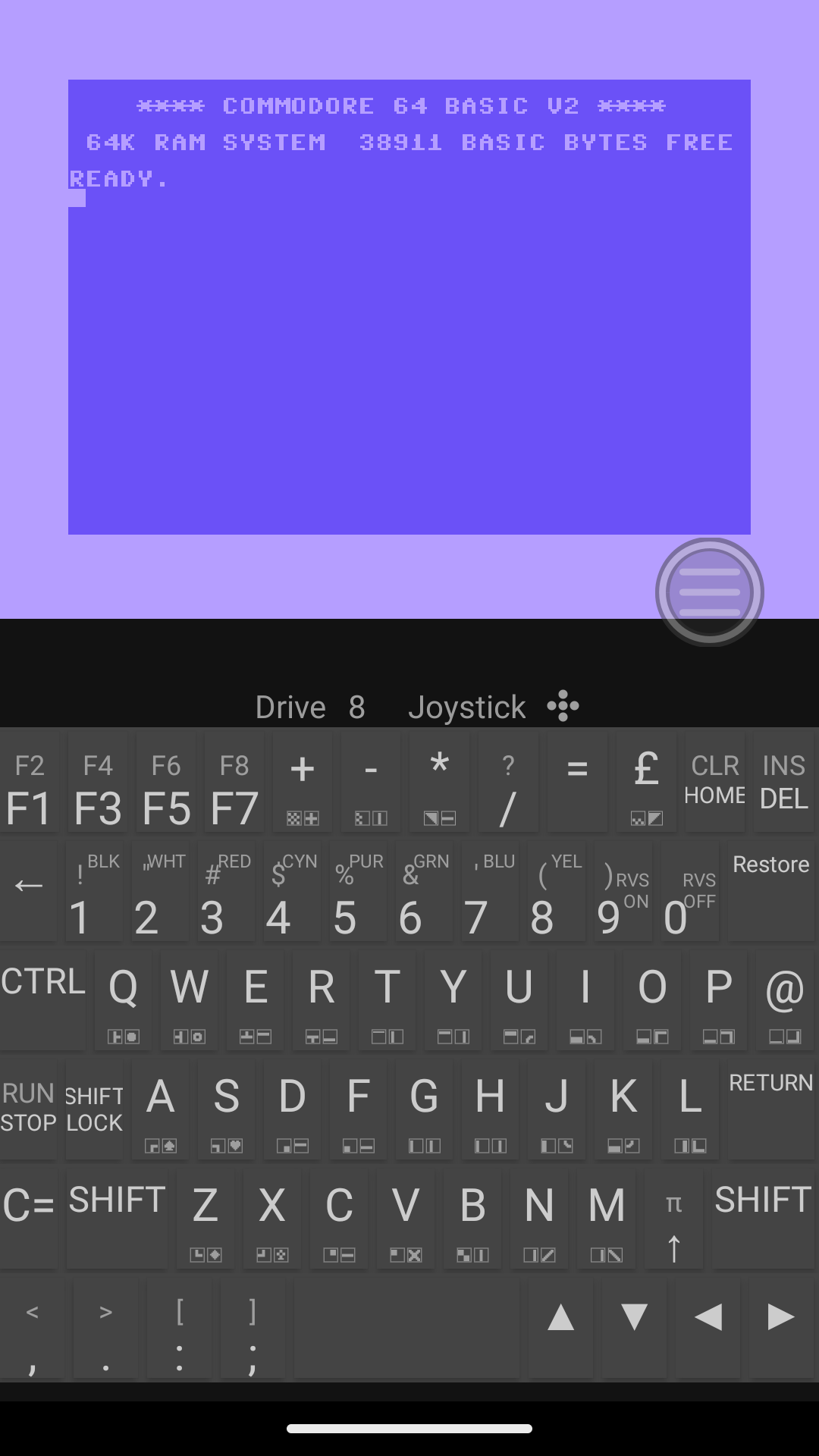 - A full virtual keyboard, a joystick and a steering wheel for the touchscreen are available.