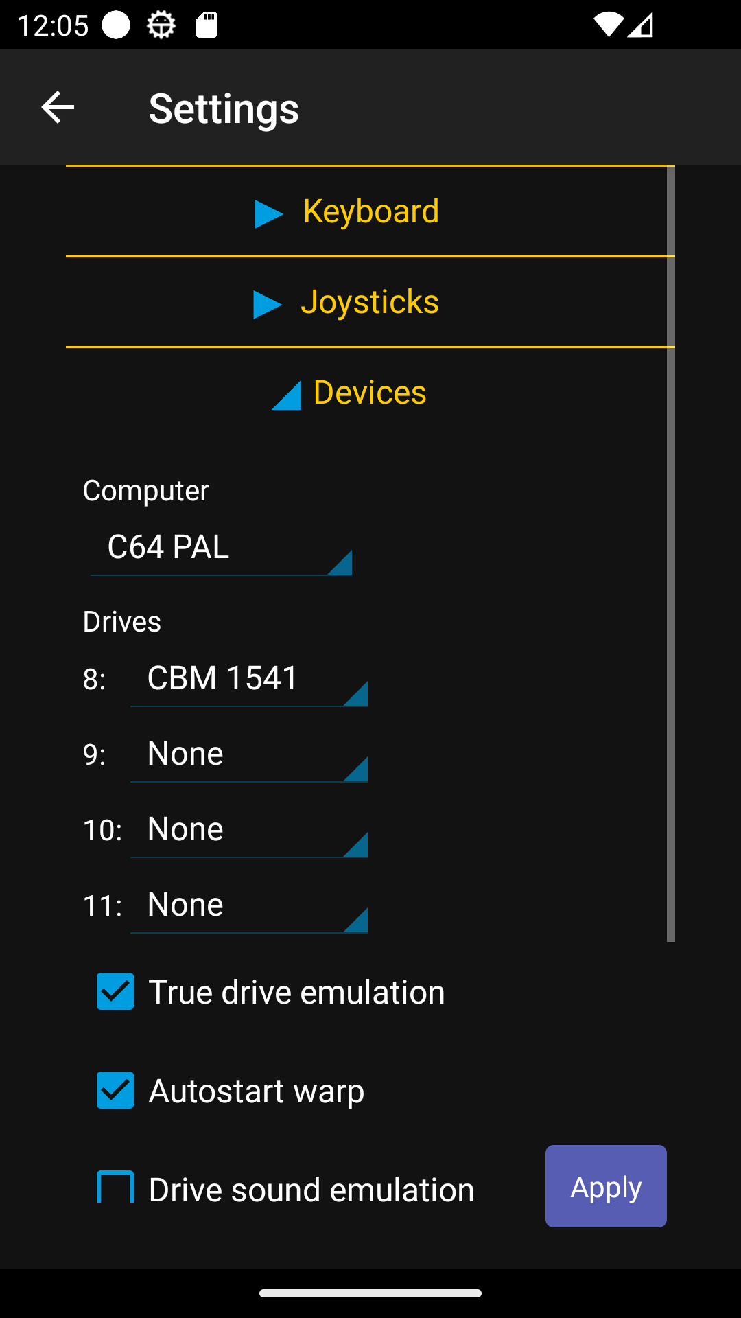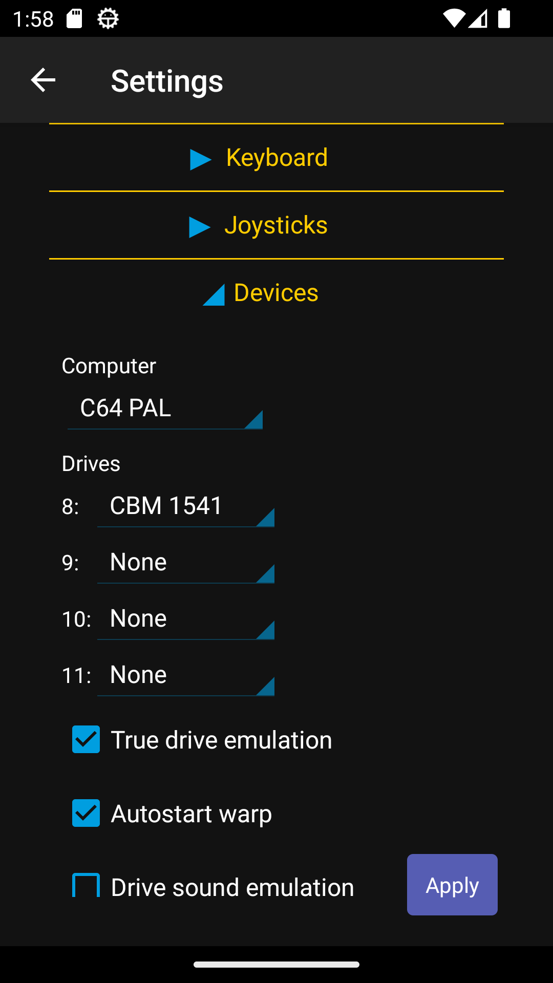 - All disk and tape formats supported by VICE can be used.