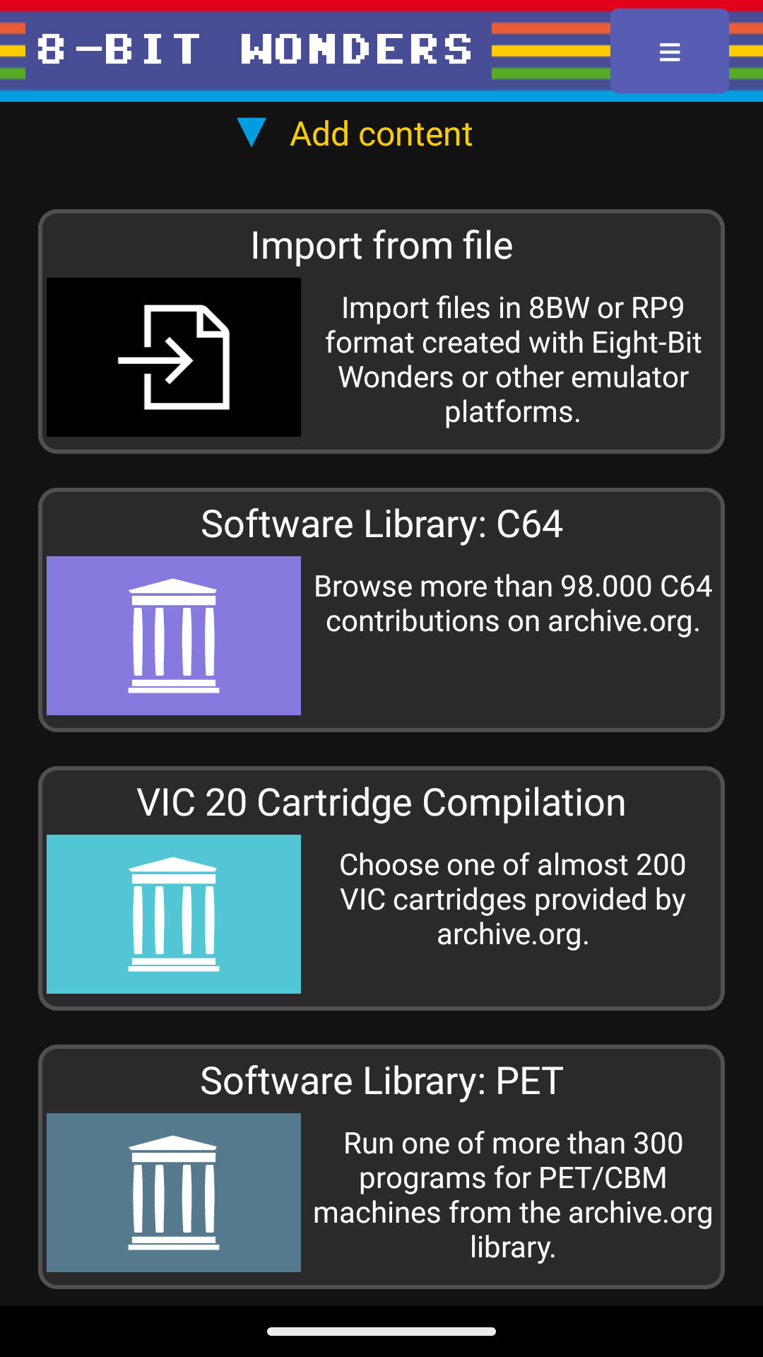 - Direct access to the software library on archive.org.