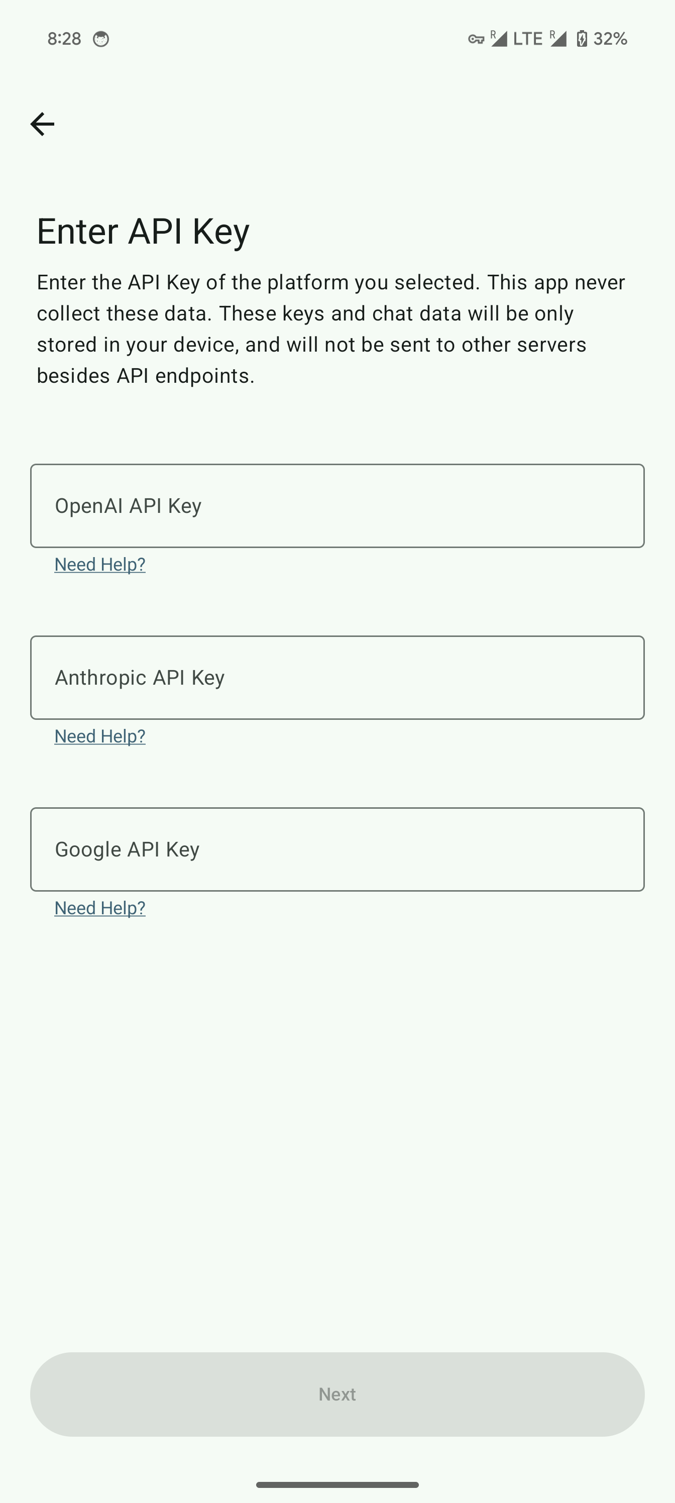 Chat history is only saved locally. The app only sends to official API servers while chatting. NOT SHARED anywhere else.