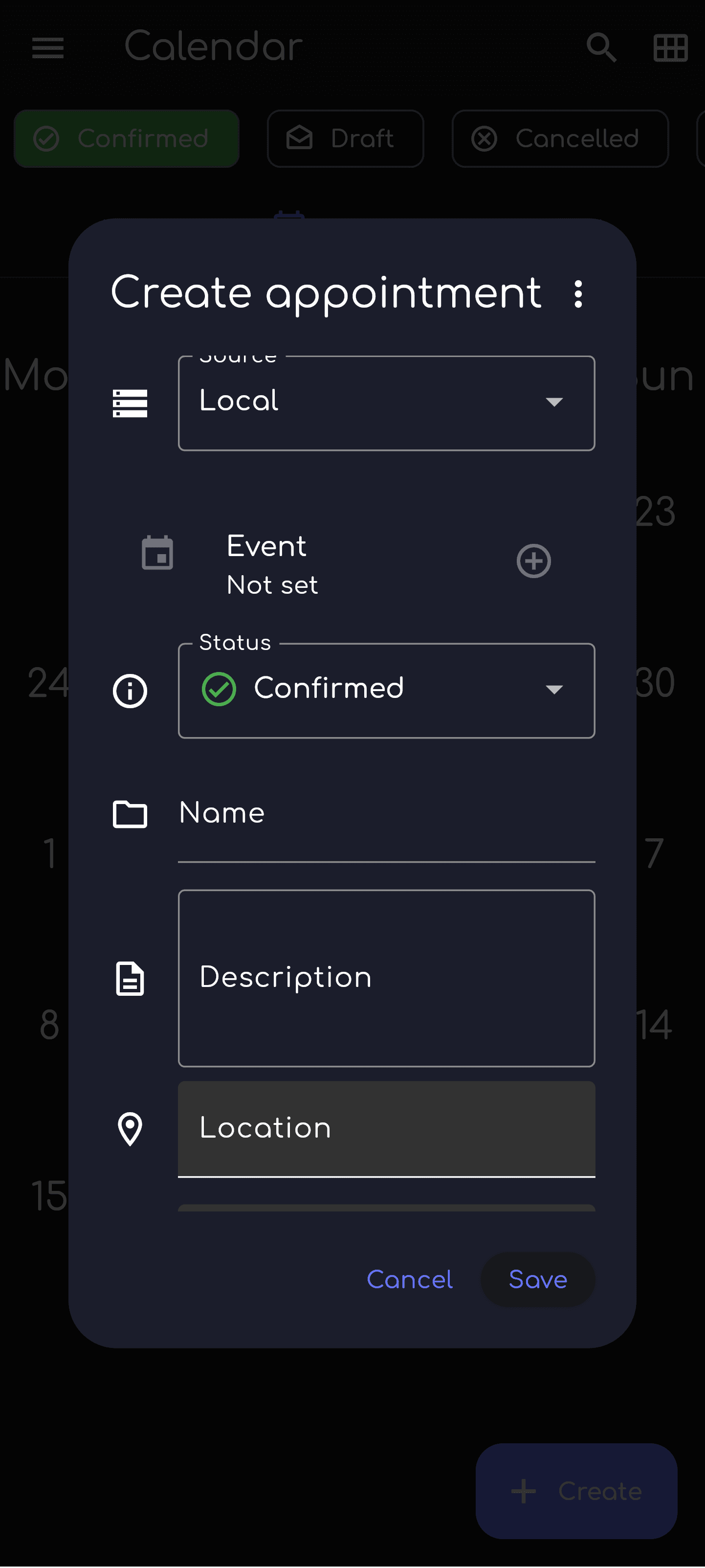 * Support for more ical properties (status, location)