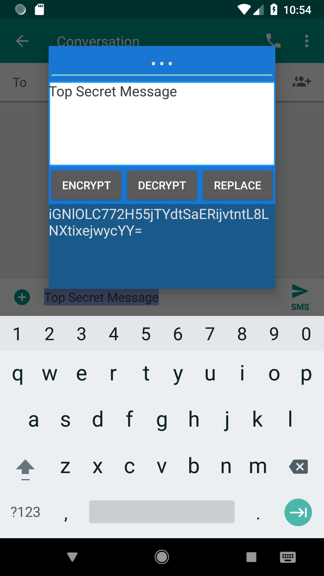 This application can be used standalone, as well as in-place, to avoid the tedious application switching. To encrypt text, simply highlight the text, and tap "ENCRYPT TEXT" from the popup menu.