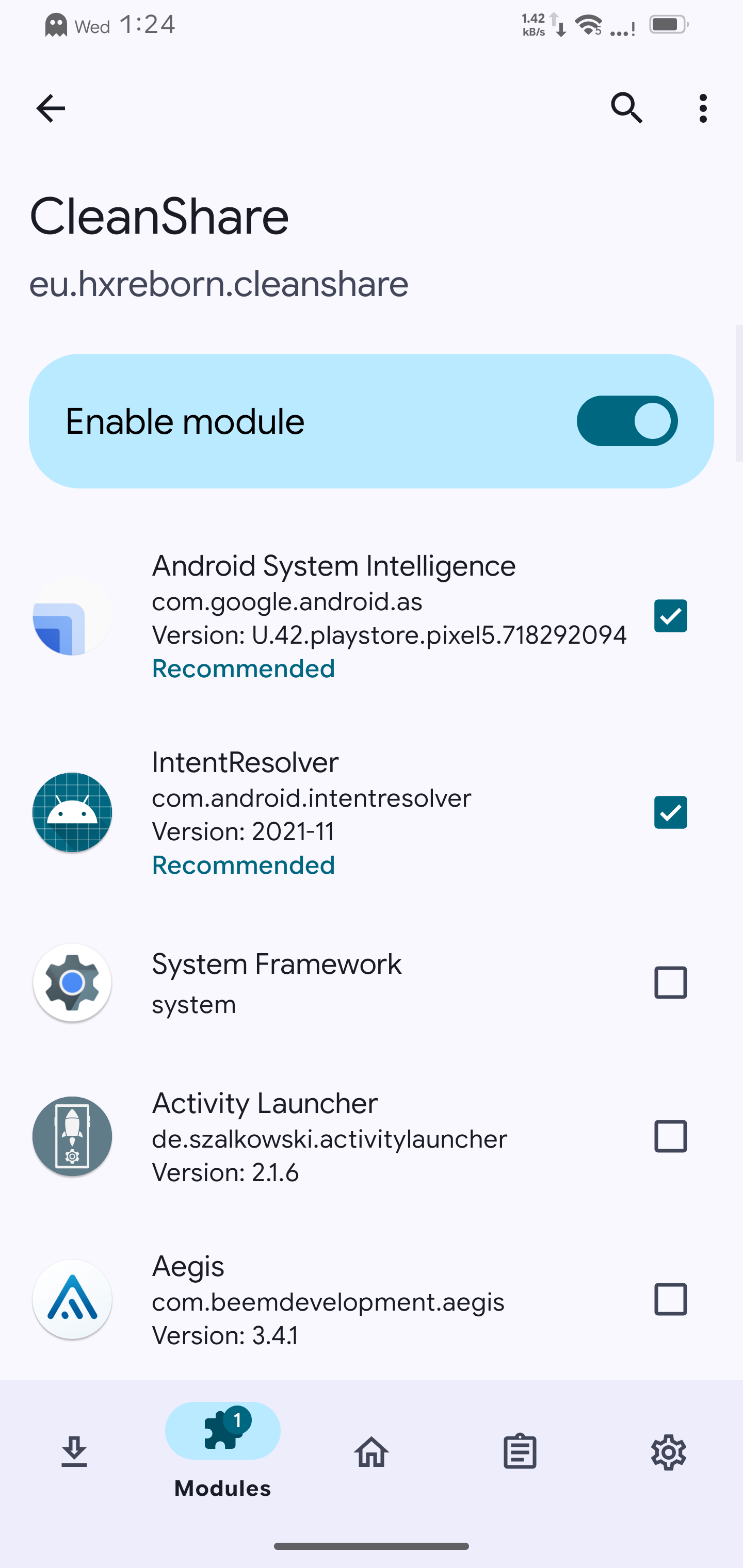 Direct Share shows a row of suggested contacts and conversations when sharing content. This module hides that row and blocks share target profiling.