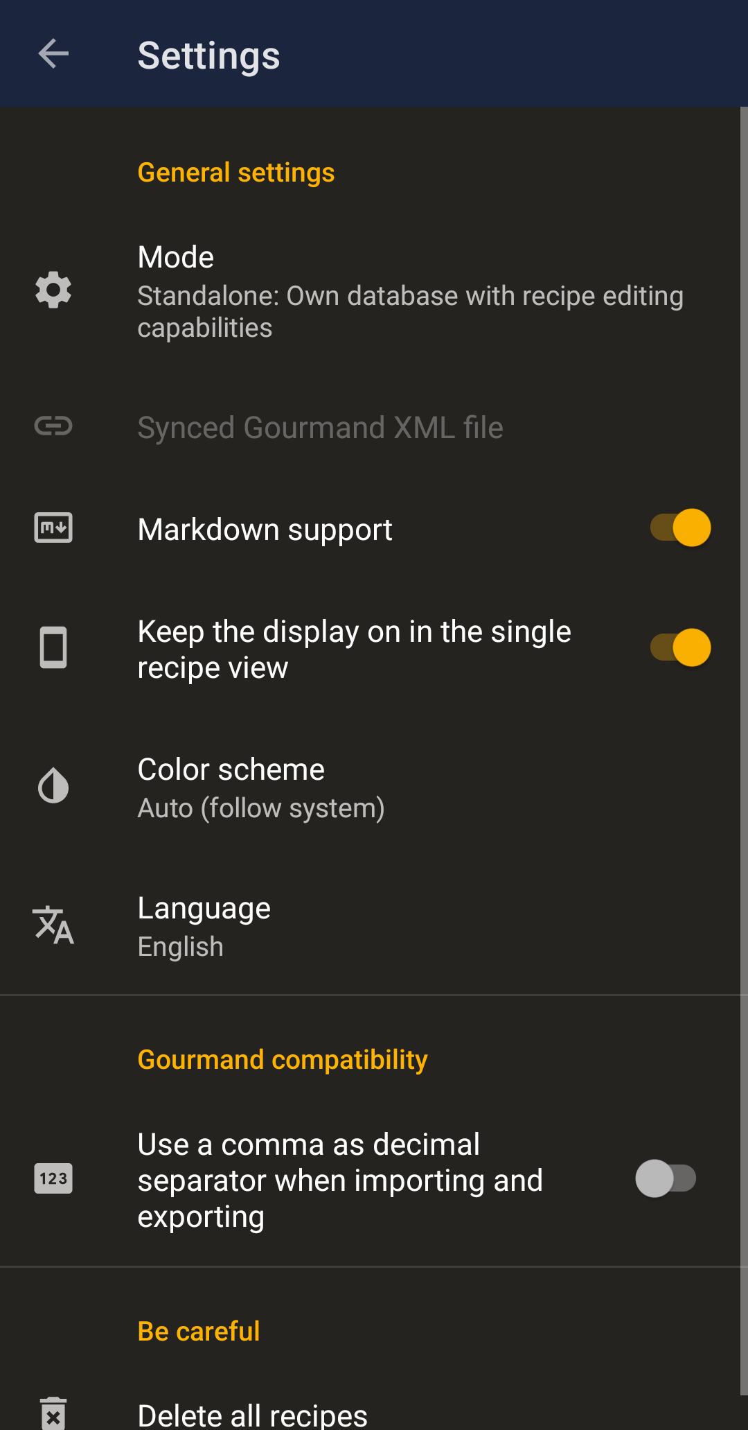 📦 Export and share recipes as JSON files or ZIP archive with friends or use the Gourmand XML format