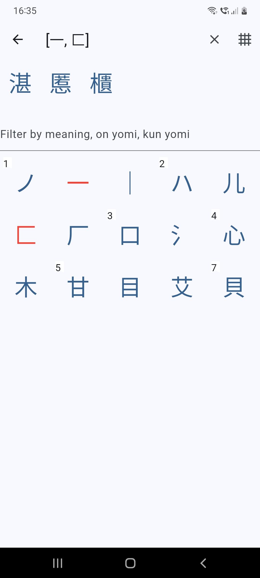 InsertRadicals <>Will match kanji composed with the selected radicals.