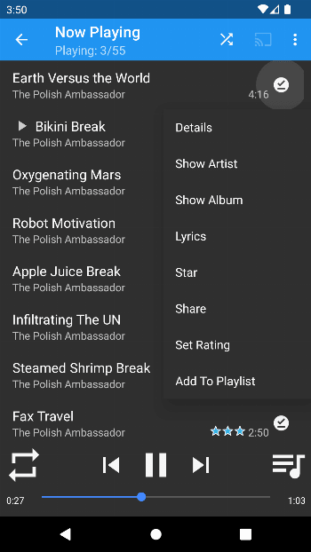fully customizable Android drop-down menu that supports Text with/without Icons, Separators, and even fully customized views.