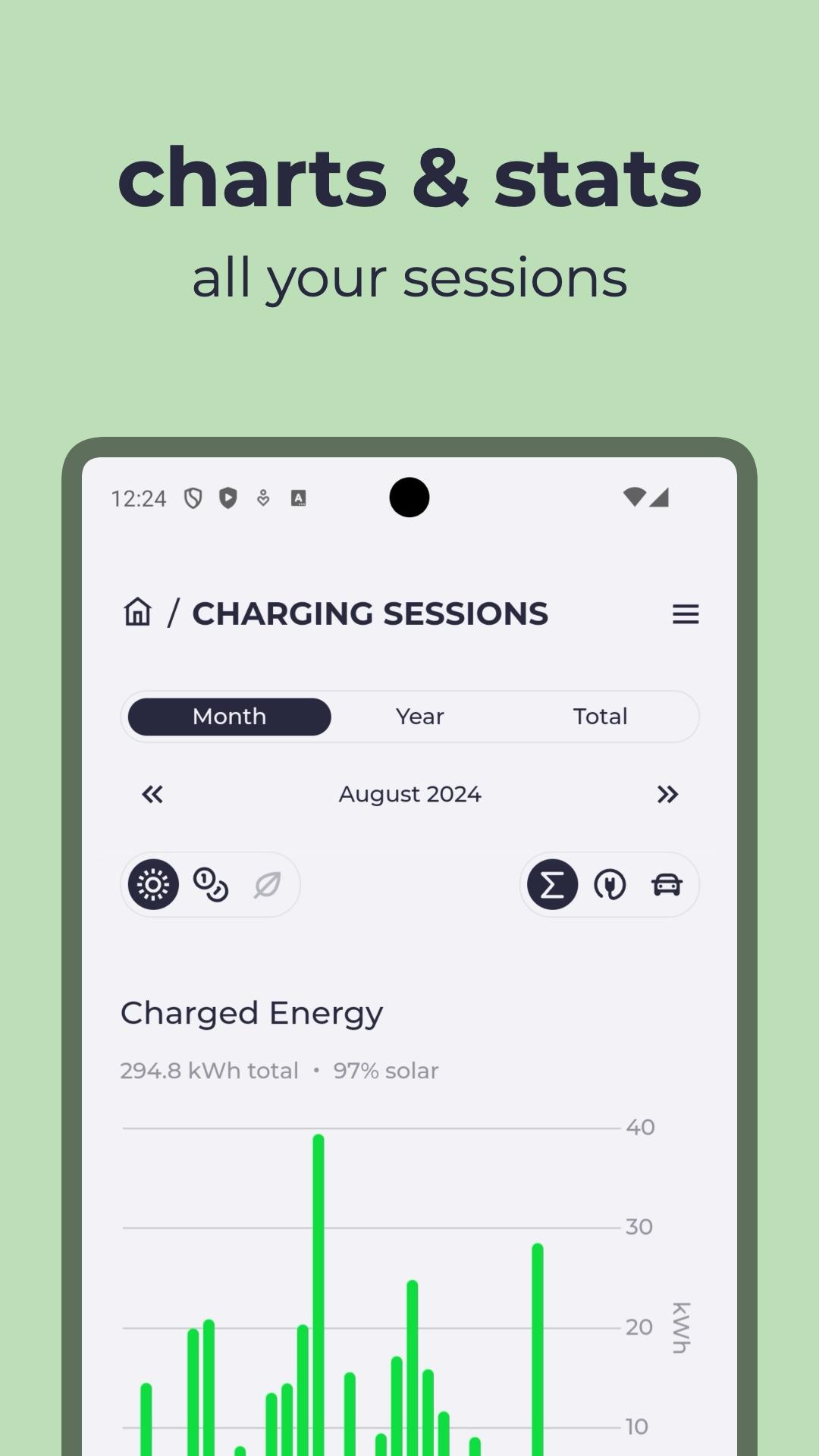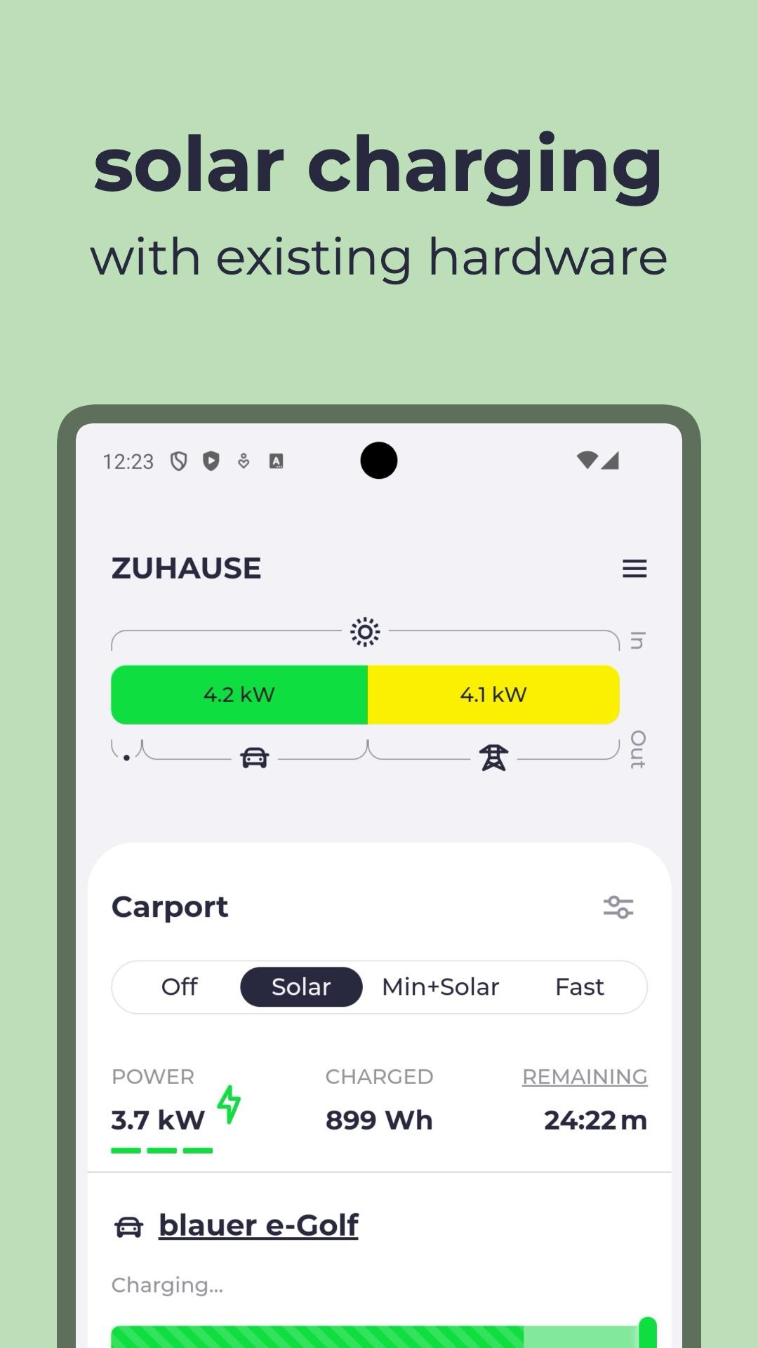 Charge your electric car when the sun is shining or when electricity is clean and affordable. With this app, you can access your local evcc instance on your home network.