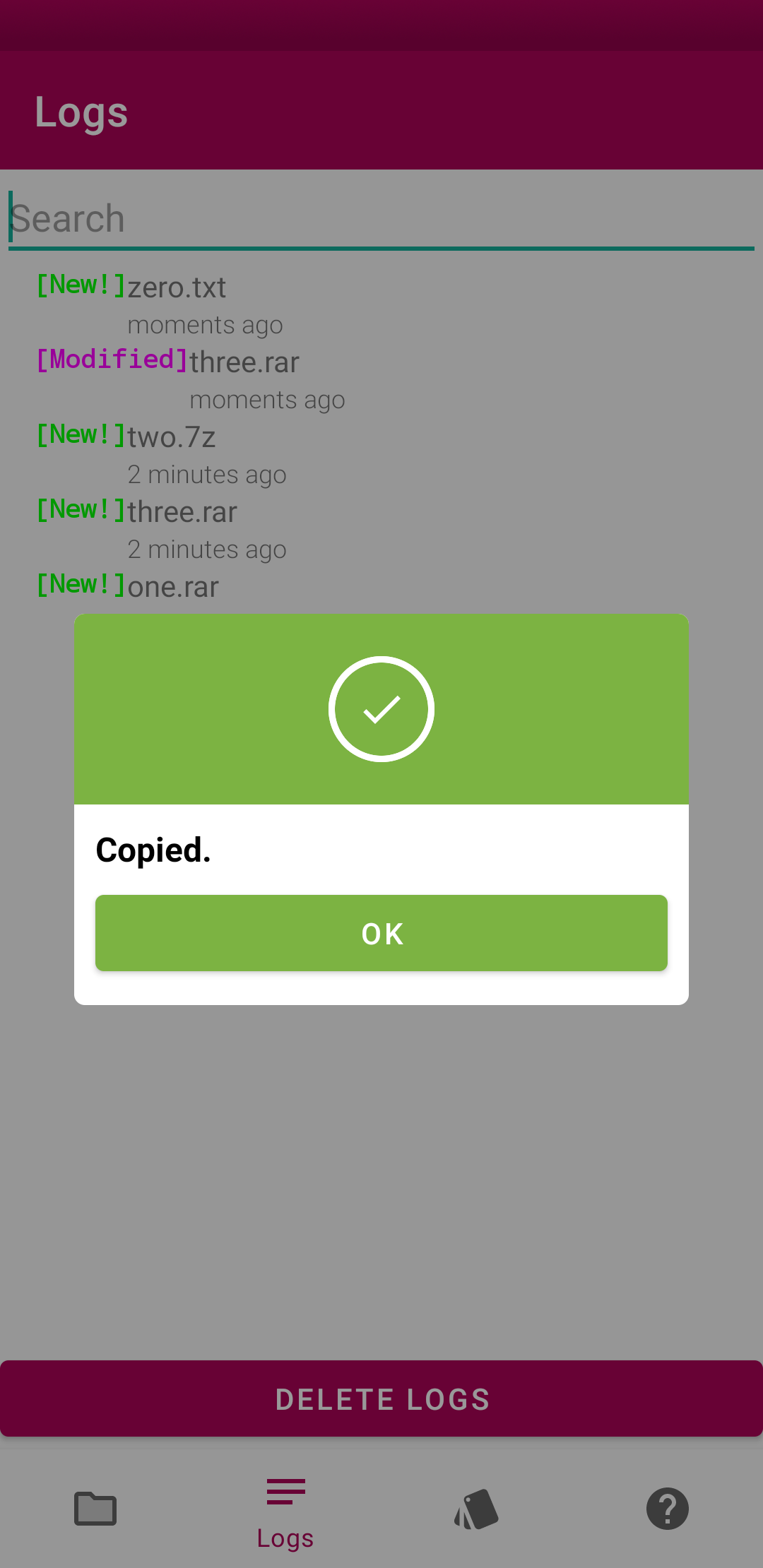 This open source application is a tool to scan and log changes in folders you choose. Using MD5, SHA-1, SHA-256, SHA-512 to detect changes of files in folders. With easy log search, you can search the logs using file name, folder name, hash or checksum. Also view and easily copy hashes or checksums of the logged files (MD5, SHA-1, SHA-256, SHA-512). You can run scan manually at any convenient time, or you can make use of auto background scan.