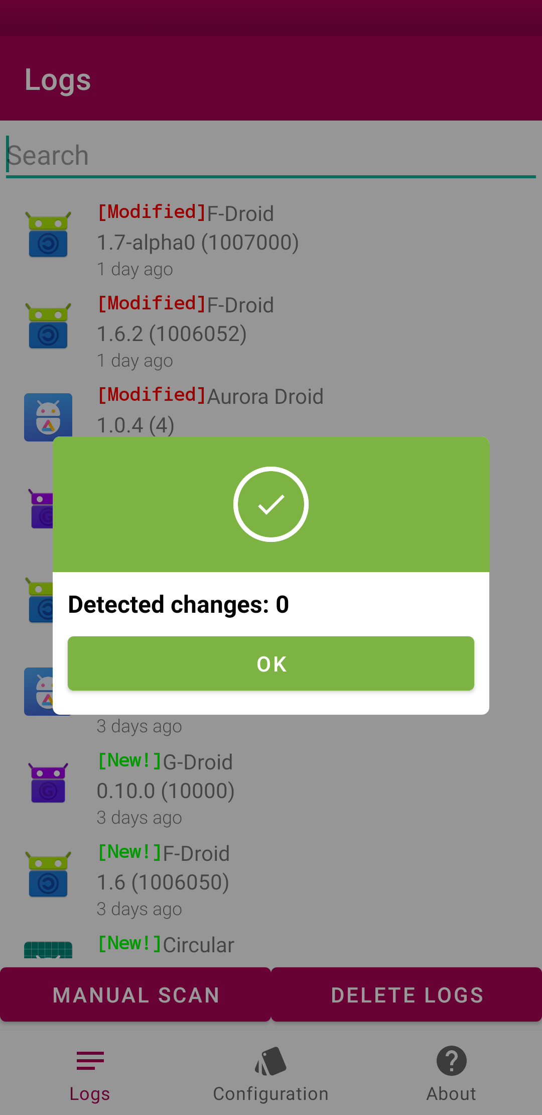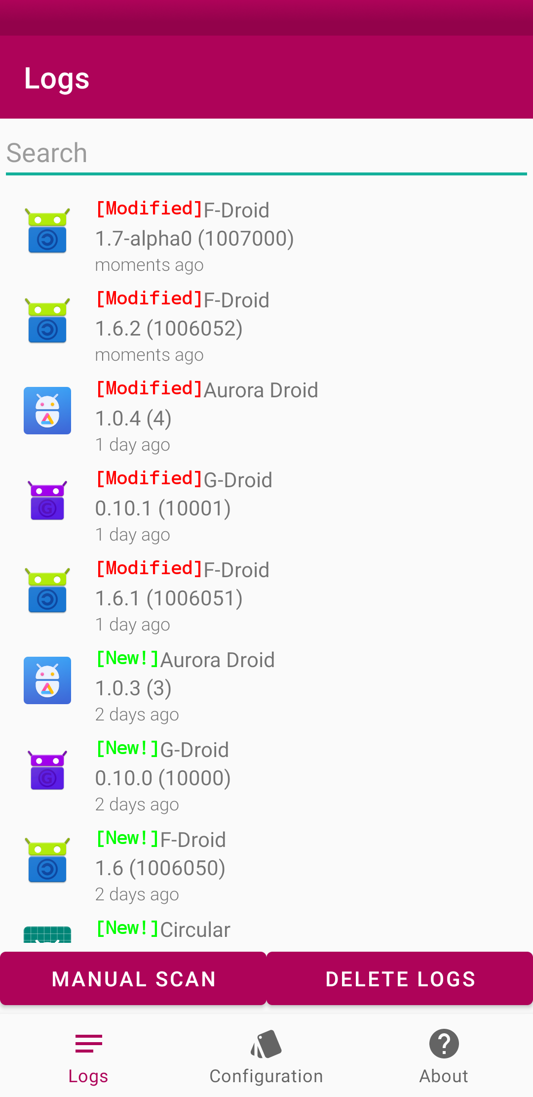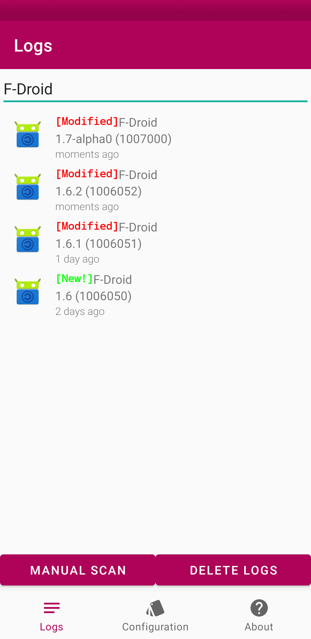 This open source application is a tool to log application installations and updates. With easy log search, you can search the logs using application name, package name, version name, hash or checksum. Also view and easily copy hashes or checksums of the logged applications (MD5, SHA-1, SHA-256, SHA-512). Detect and know silent updates or modifications by other applications (ex: Google Play Services) by checking the logs. This application should auto-log when there is an installation or an update (except when stopped by means of force stop), but if you want you can also run it manually at any convenient time.