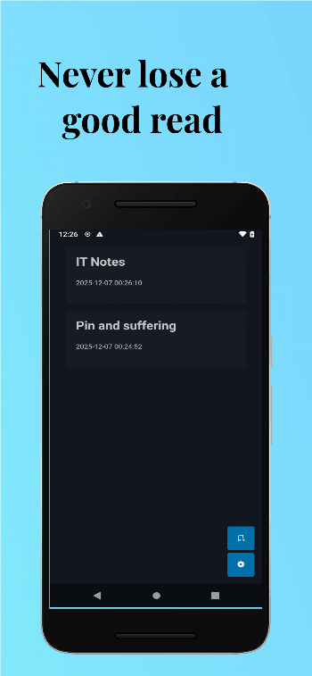 Instantly bookmark articles from your browser or other apps. Keep your reading list organized and accessible in one clean, clutter-free feed. "Save now, read later" has never been this simple.