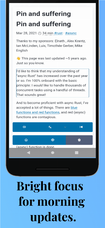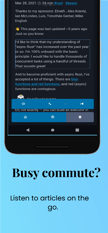 Busy commute? Tired eyes? Turn any saved article into an audio experience.