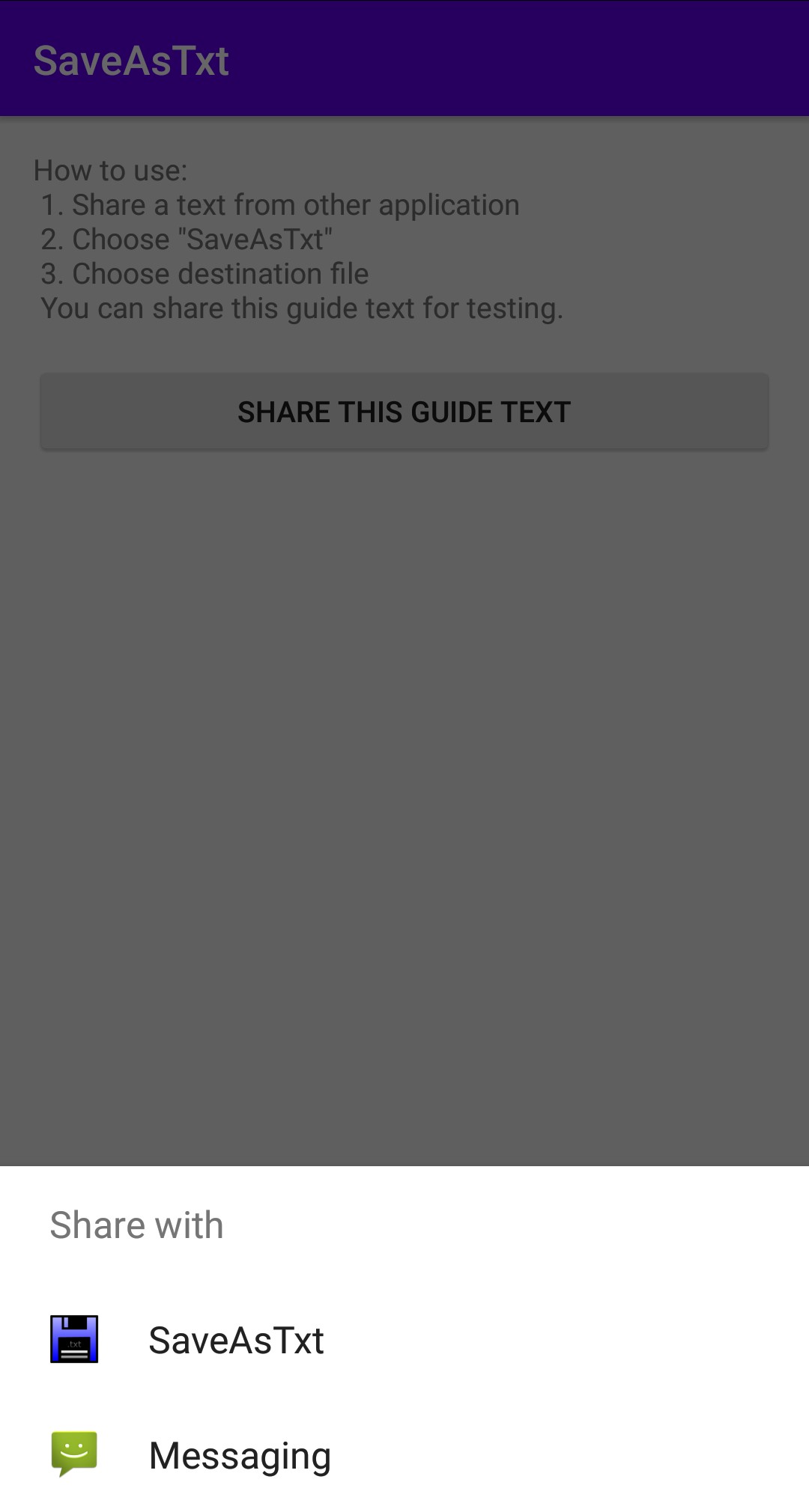 Very small tool to save as txt from share menu of other applications