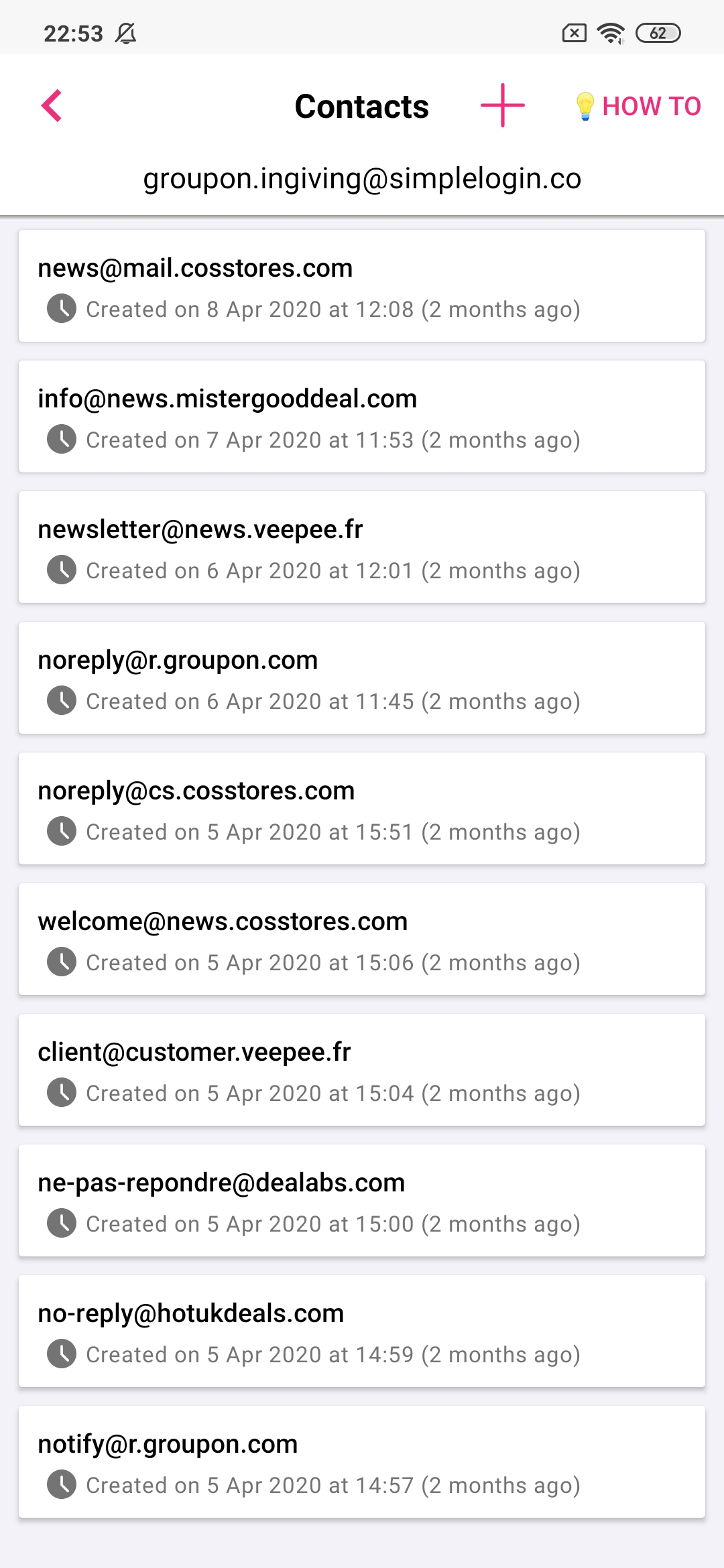 - Manage contacts: create contacts to send email from your aliases.