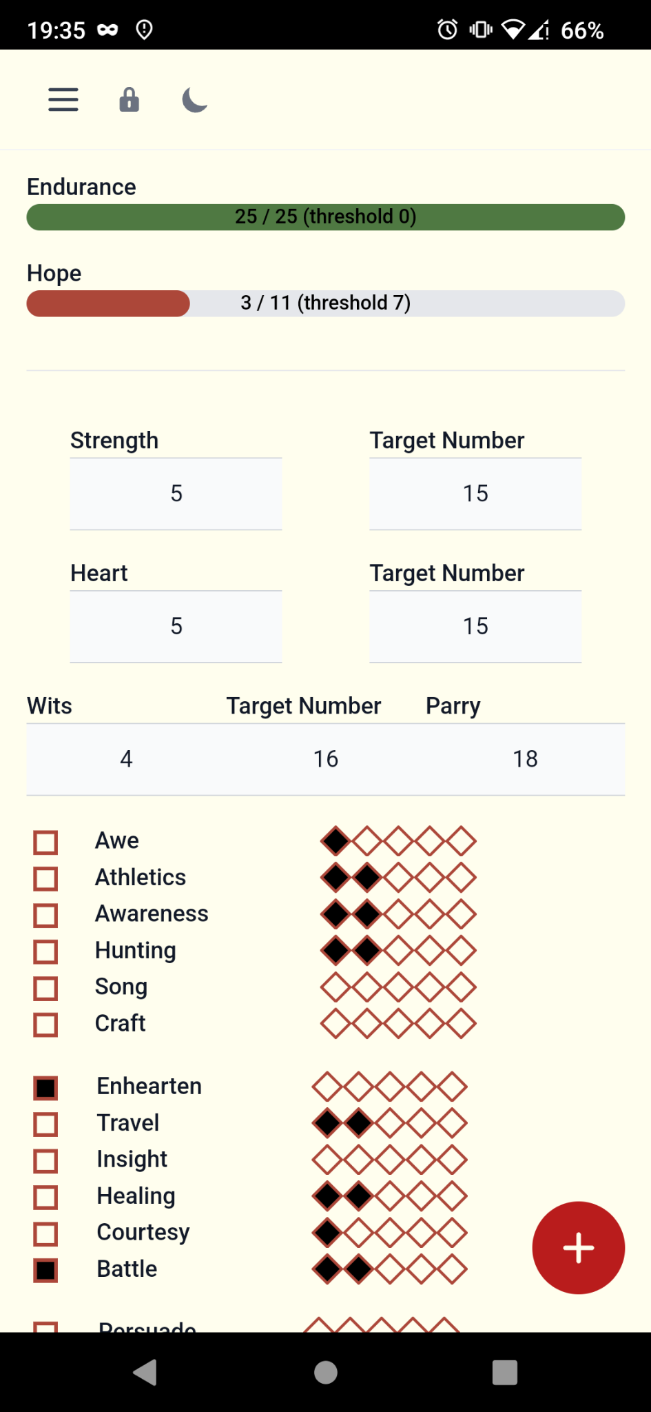 This application contains all the information of a character. It allows the creation of new characters and the automatic management of many game features (e.g. shadow conversion, rest, levelling up, ...).
