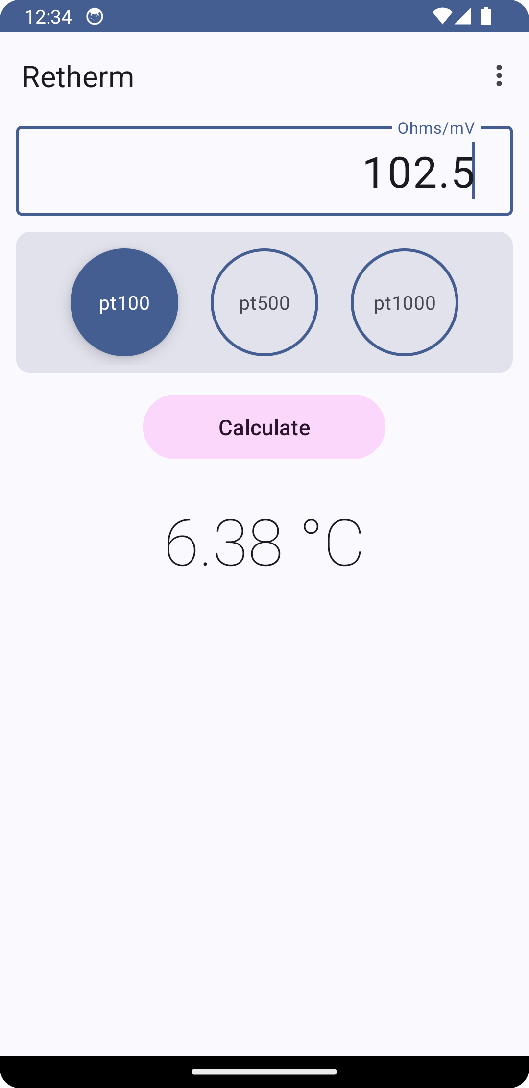 icon Retherm is a simple application that converts resistances from RTD sensors to temperature. This app can currently convert Pt100, Pt500 and Pt1000 resistances to degree Celsius or Fahrenheit. The standard equations are done to the popular European/DIN standard for the temperature range of -200°C to +850°C with an average margin of error of about 0.02°C. An option is available for calculations to the less used American standard for the range 0 to 100°C with an average margin of error of about 0.2°C.