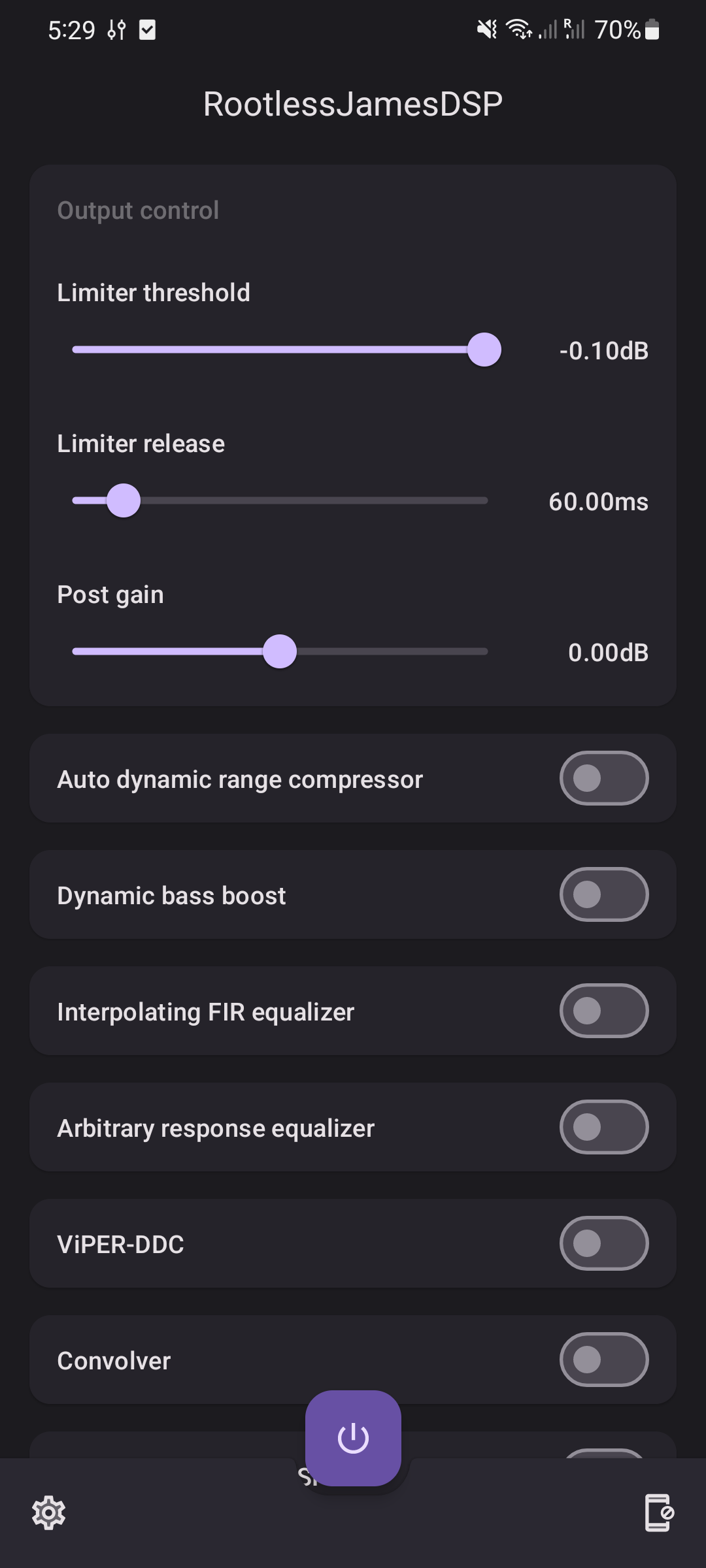 * Cannot coexist with (some) other audio effect apps (e.g., Wavelet and other apps that make use of the `DynamicsProcessing` Android API)