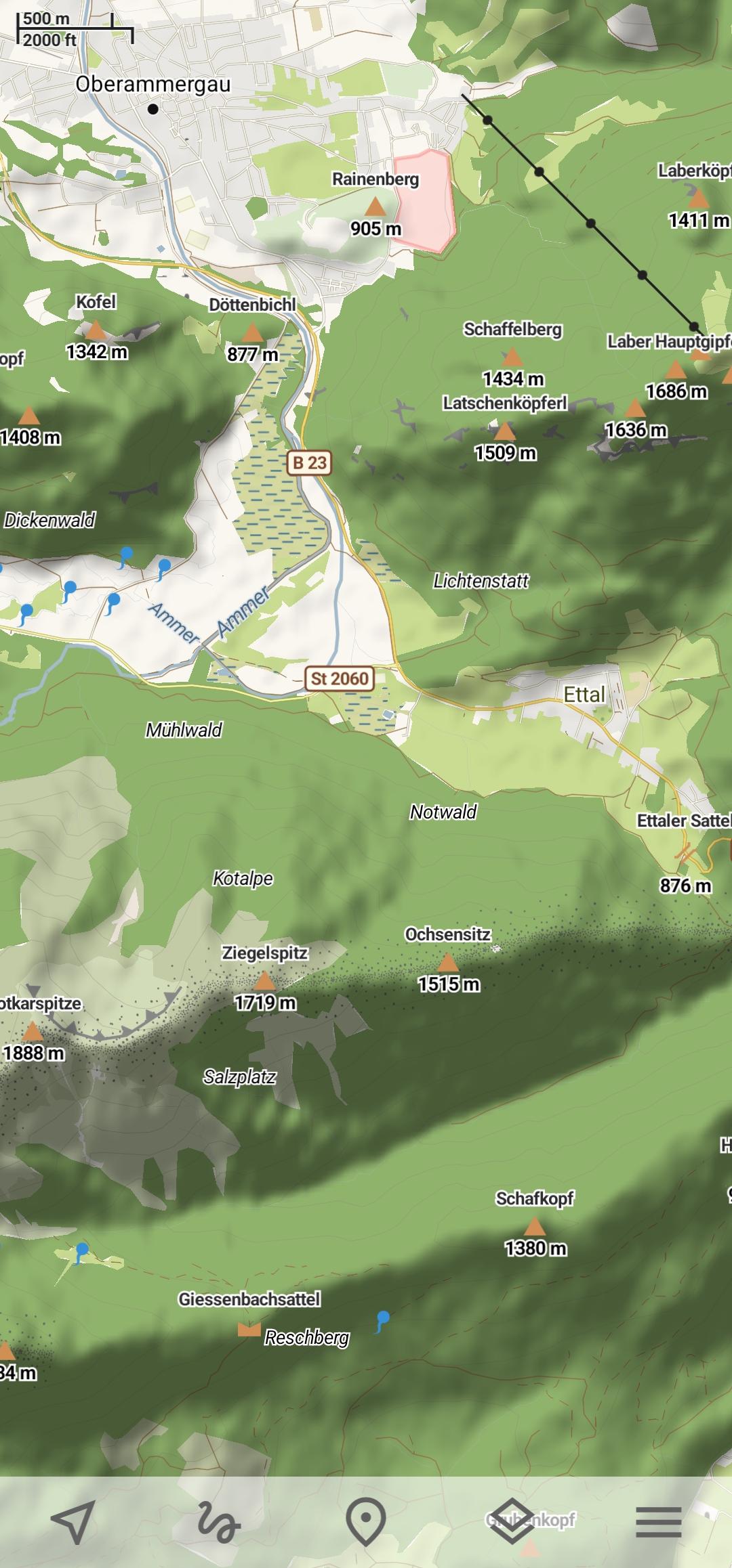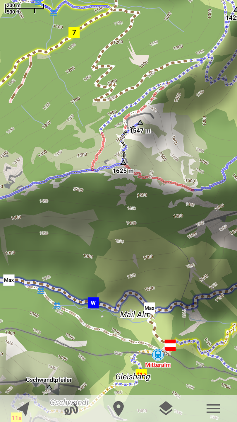 HikingSpecial hiking activity mode emphasises paths and tracks on map. It visualizes path difficulty and visibility and displays hiking routes. It also displays special OSMC symbols that help you identify desired route.