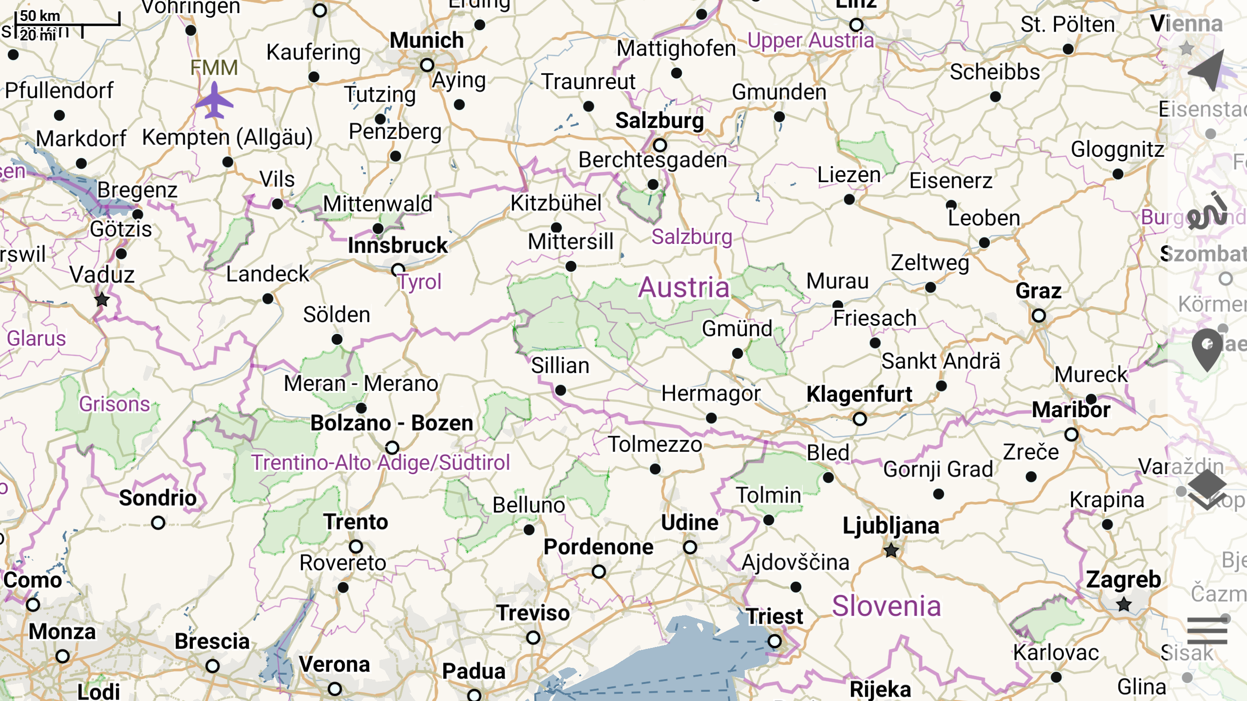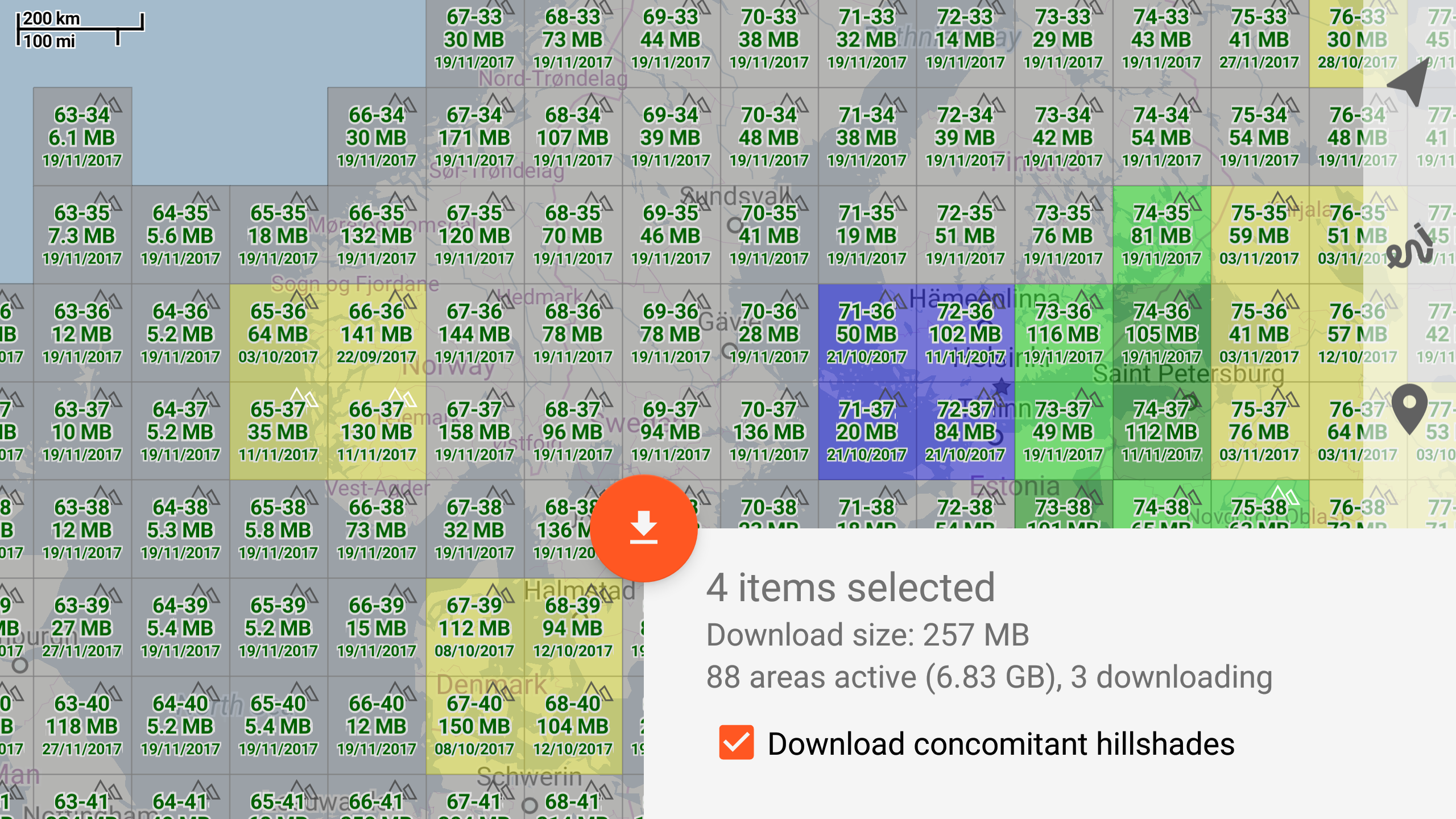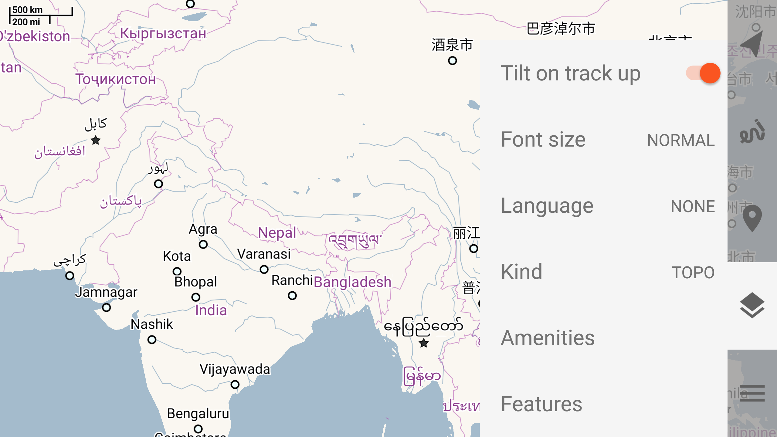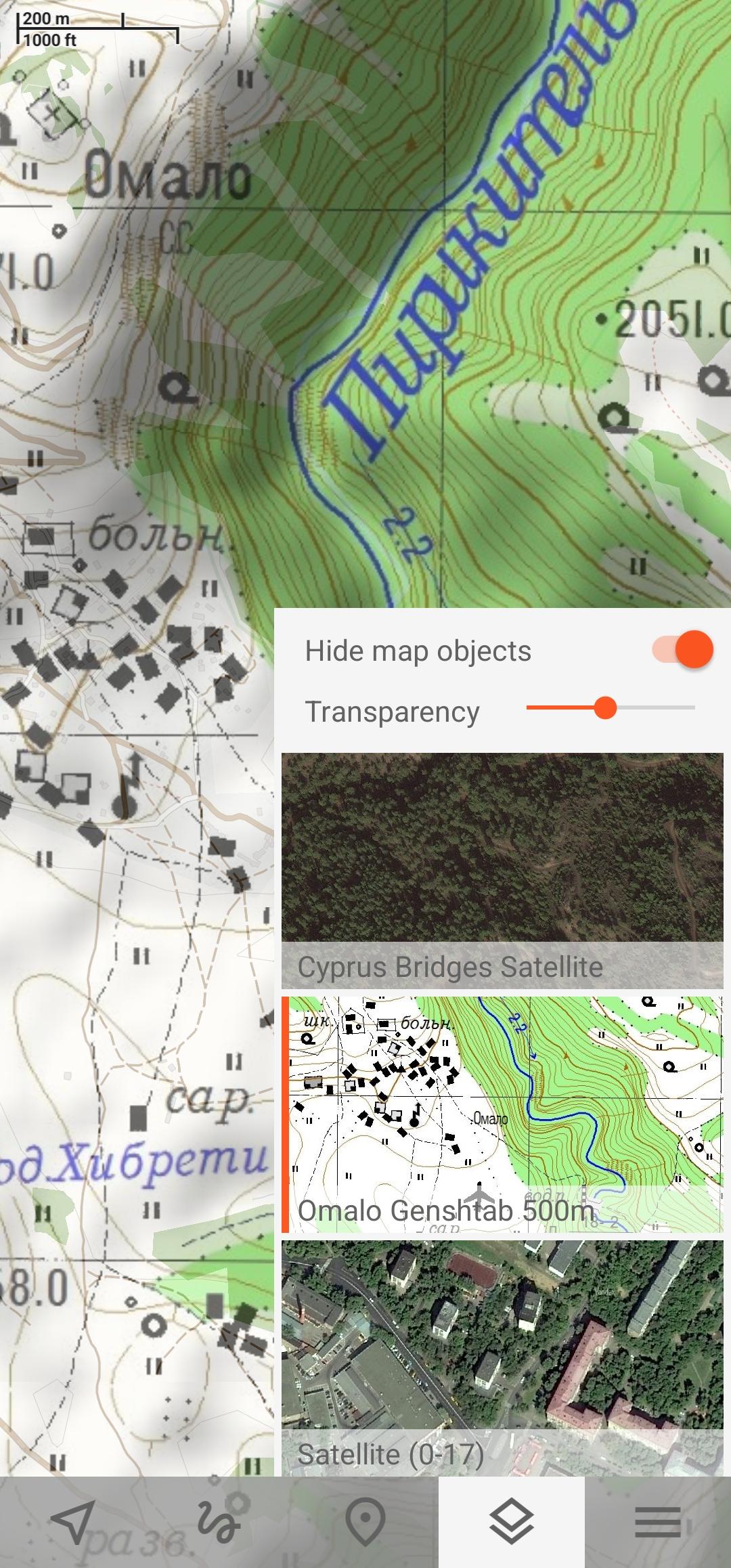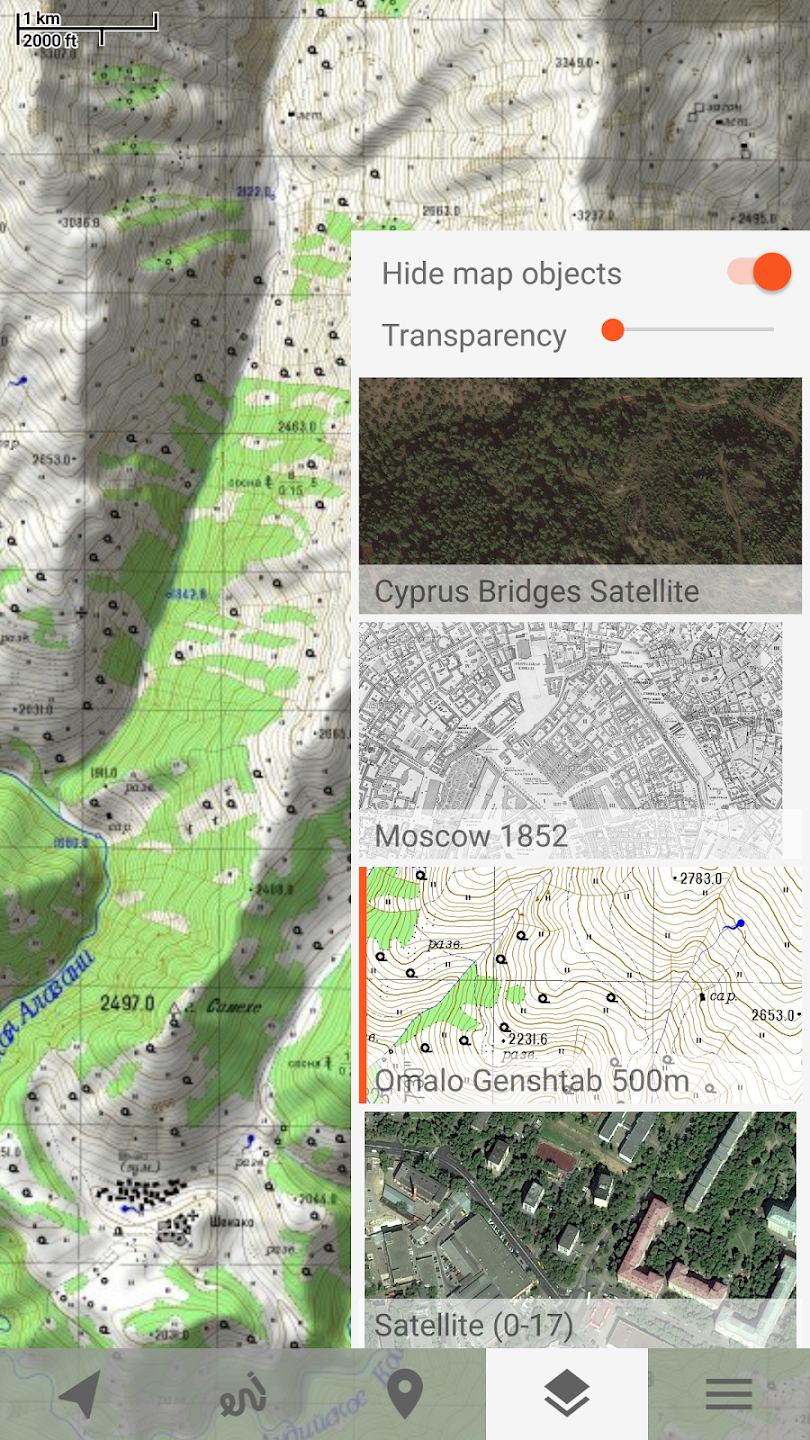 Offline mapsTrekarta uses OpenStreetMap based vector maps that are lightweight, offline and are constantly enhanced by contributors. Maps contain detailed topological data with elevation contours. Some map elements can be filtered out for cleaner look. Trekarta has built-in hillshades support. You can add custom maps in sqlite or mbtiles format to cover your area of interest. Custom maps will be shaded as well. Such maps can be created by yourself with SAS.Planet application from mostly any online source or converted with MapTiler and other applications from other map formats.
