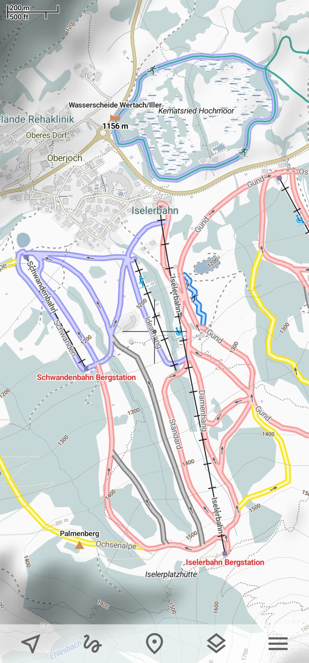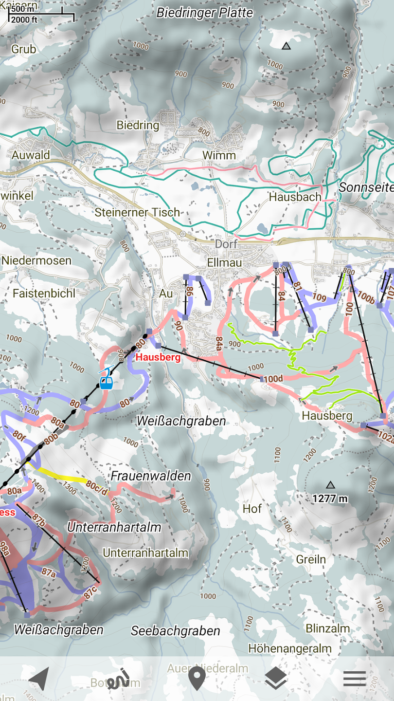 Skiing and skatingSkiing activity mode displays clean winter map with mostly all skiing activities: downhill, nordic, hiking and touring. As a bonus freestyle snow-boarding, skating and sleighing areas are displayed.