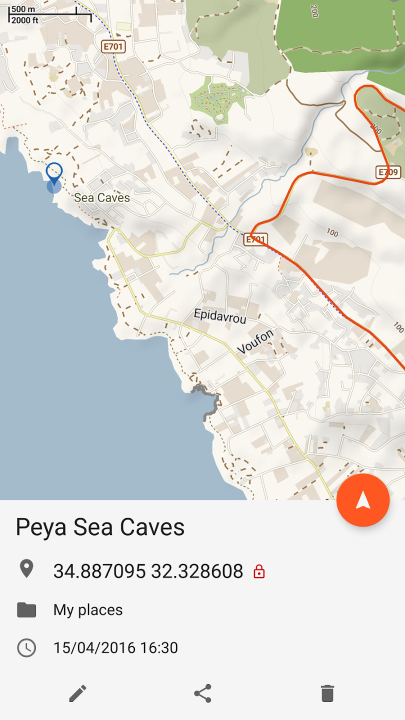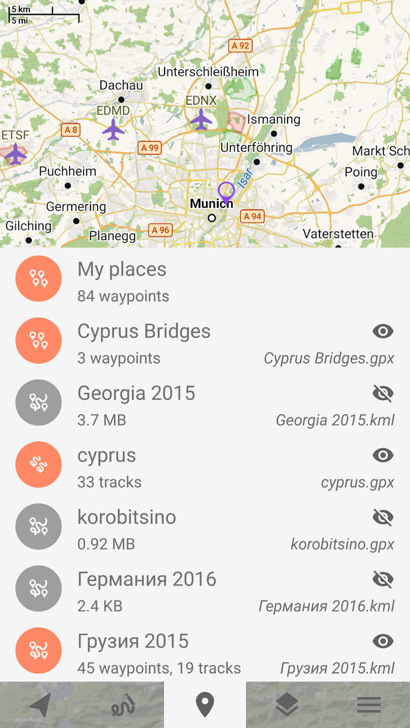 PlacesPlaces can be easily imported from GPX and KML files or can be created within application. You can navigate to places and share them with others.