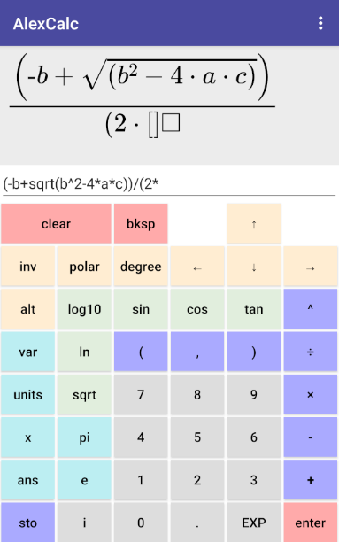 * nicely formatted (LaTeX) equation display. This avoids the need to count brackets to make sure the equation was entered correctly. Also includes LaTeX code generation.