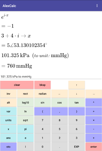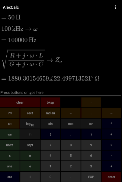 * complex number support, in rectangular or polar form (e.g. `3 + 4i` or `1 angle 90`)