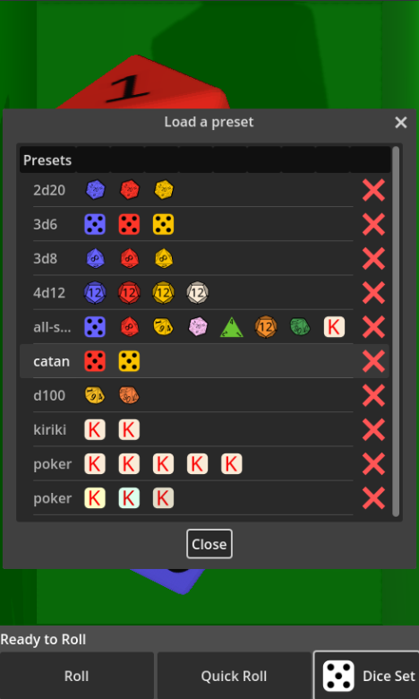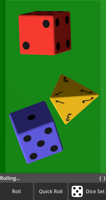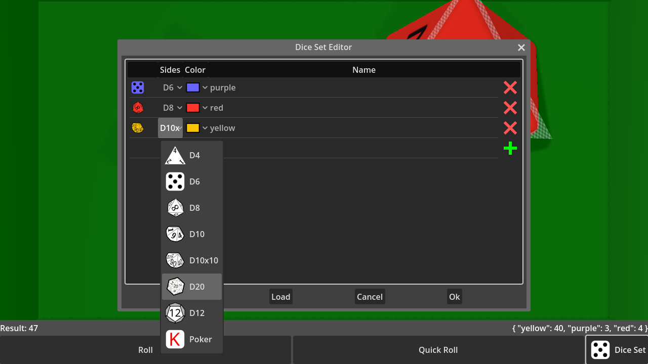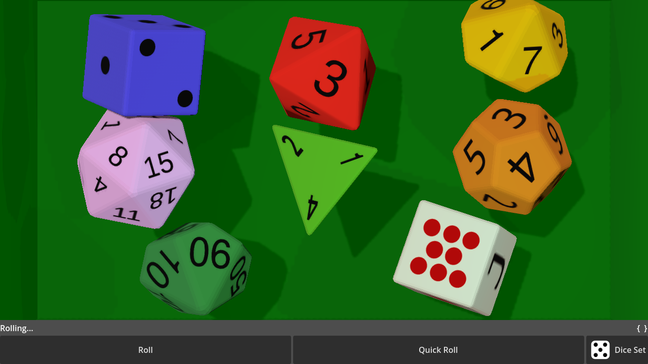 - Dynamic set of dices including d4, d6, d8, d10, d10x10, d12, d20