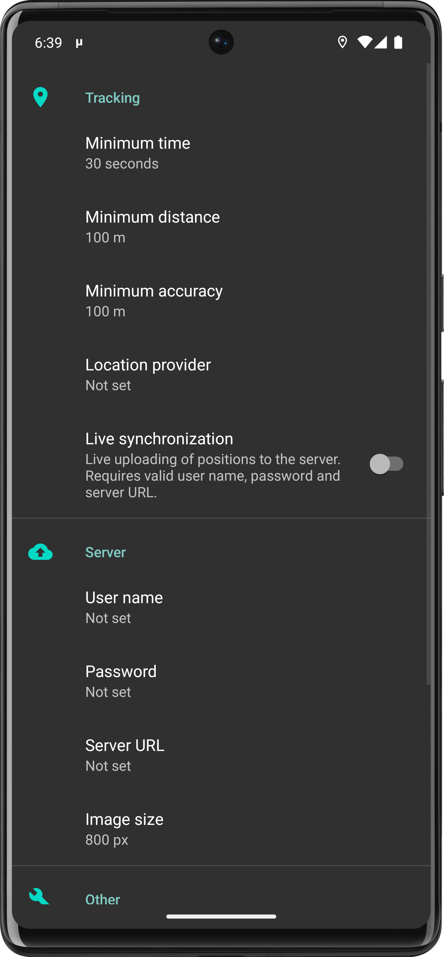 * focus on privacy, doesn't use Google Play services, logs to self-owned server