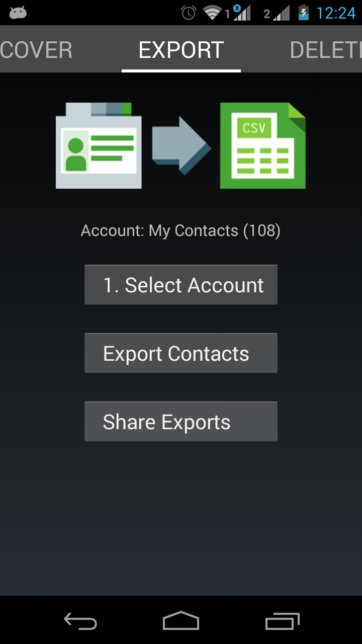 Note this is a one way import from your authorative CSV file. Contacts are imported onto a new account "My Contacts"|owned by the app. If you uninstall the app this account and contacts contained within it will be deleted. The idea is you leave the app on the phone, it does not run or use any resources when not being used. And use the app again to reimport the CSV when it changes. It is also recommended that you take backups and exports, and save outide the app.
