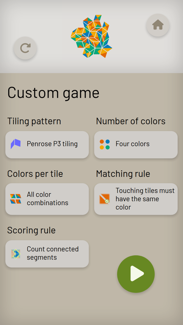 Choose from a wide range of tiling patterns to form endlessly varied tesselations: